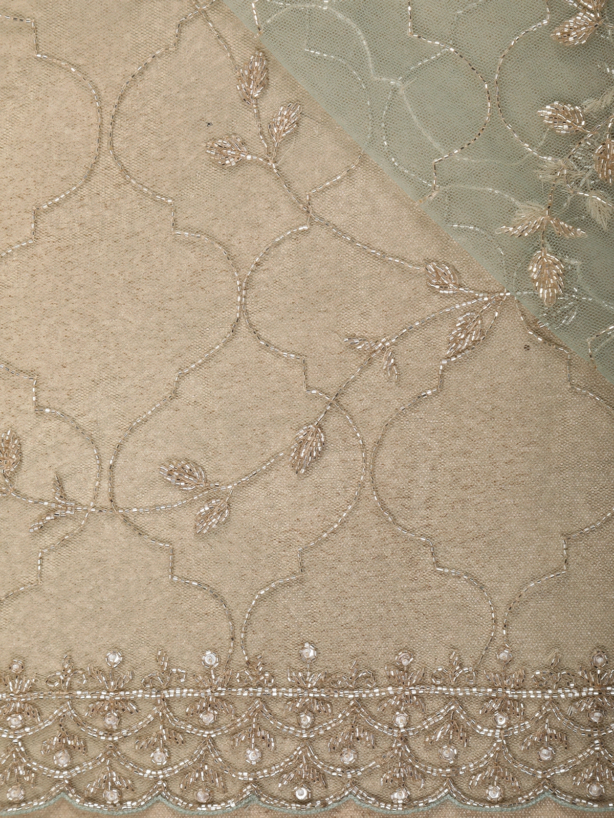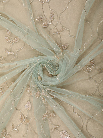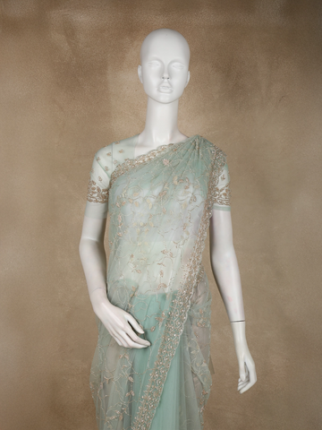 Light Green Floral Beads Embroidered Design Net Designer Saree