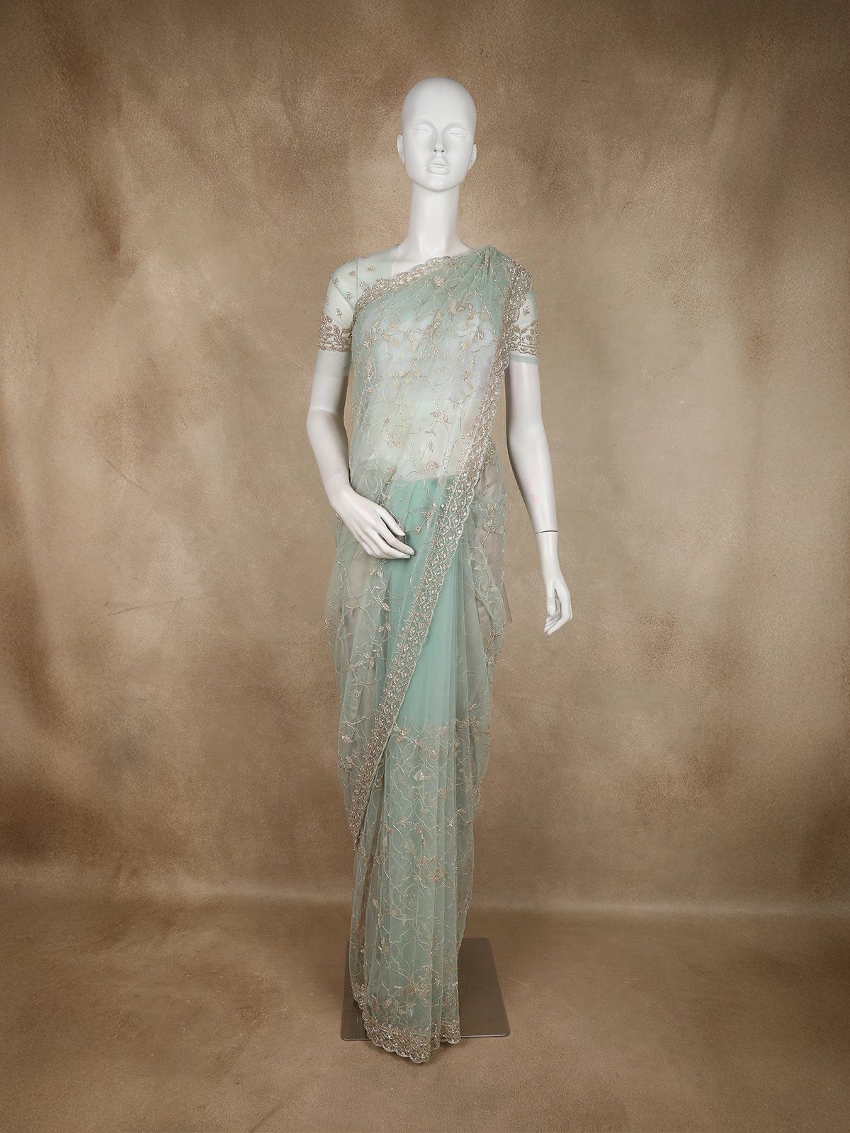 Perfect for receptions, cocktail parties, evening functions, engagement ceremonies, and festive celebrations, this light green designer saree exudes understated glamour and refined elegance—ideal for women who love soft hues with exquisite detailing.