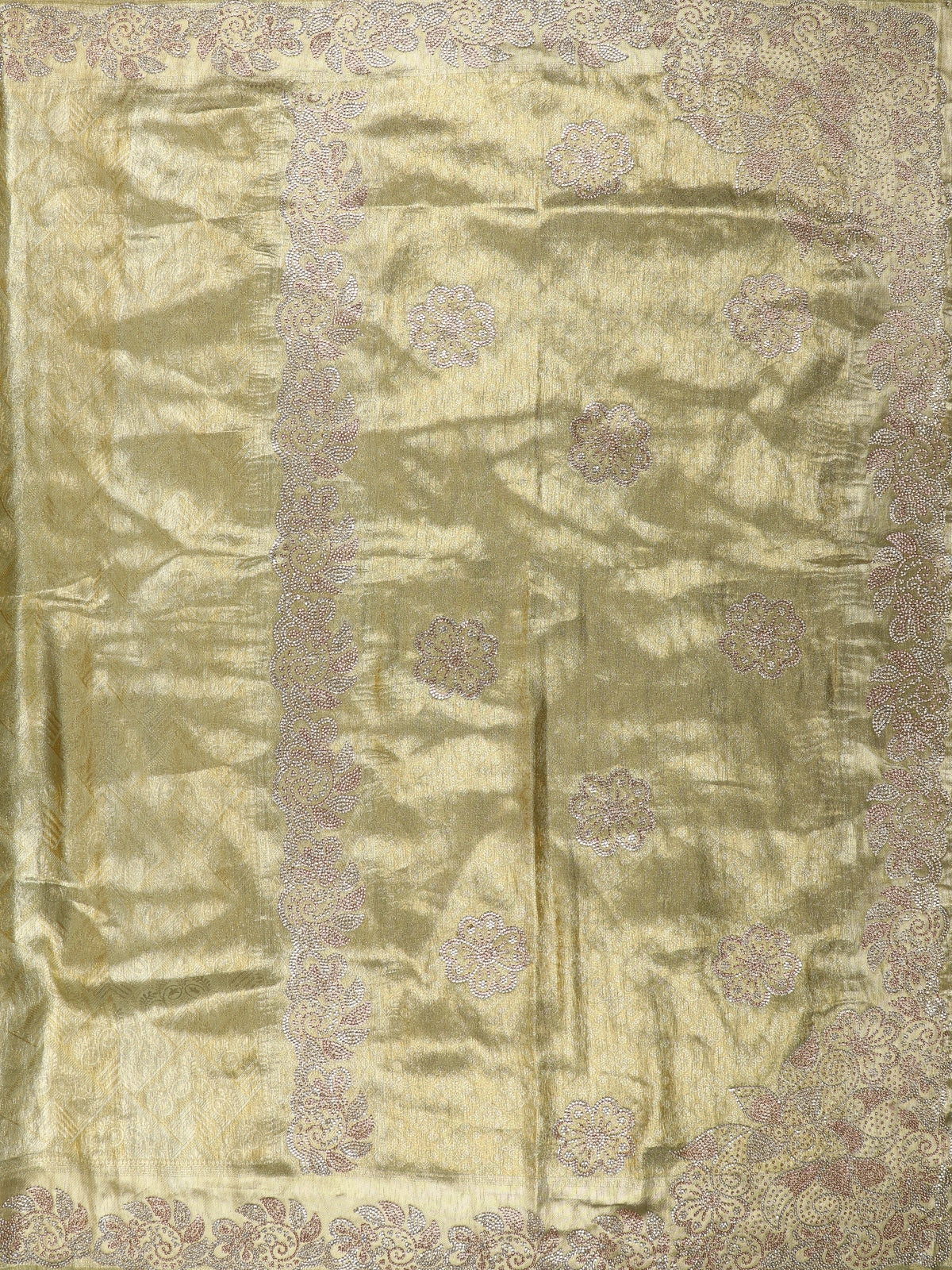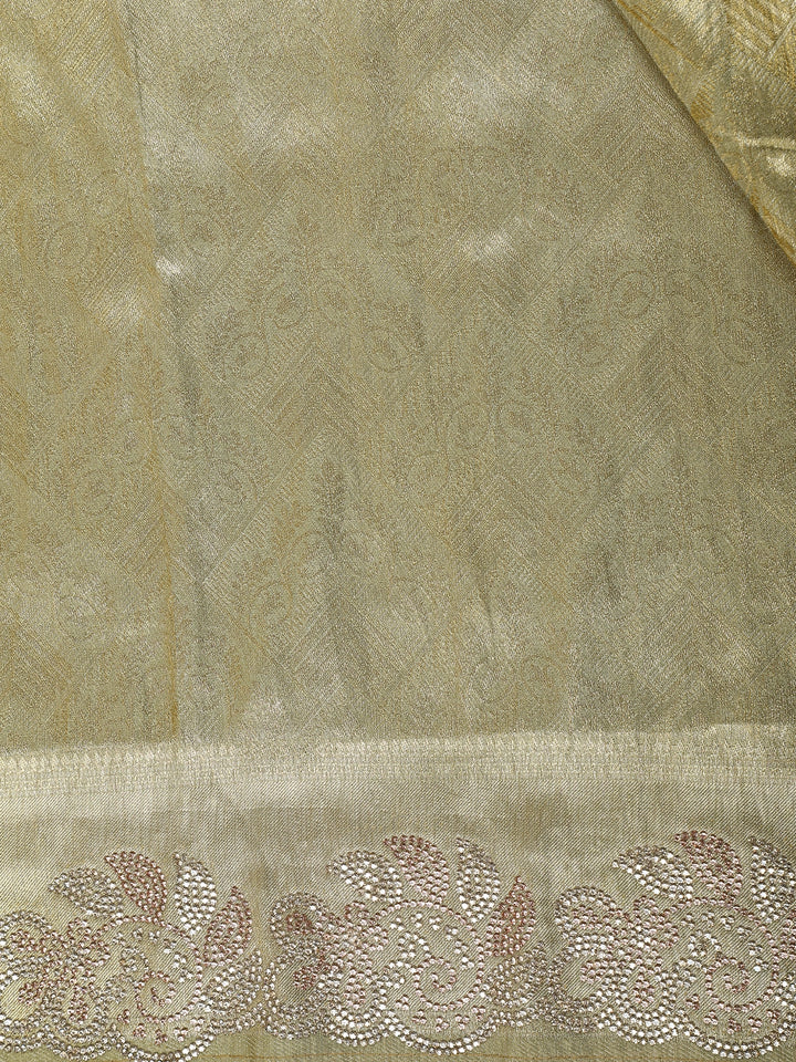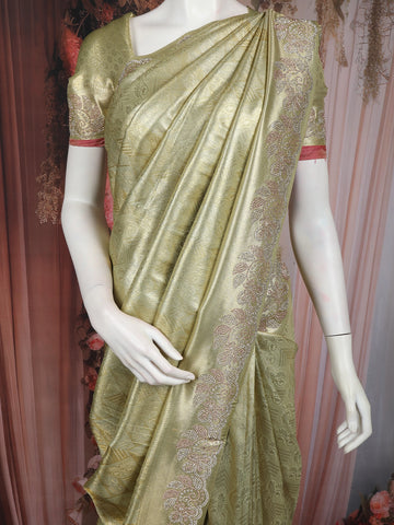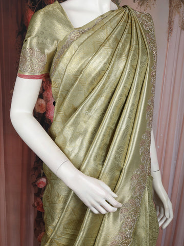 Light Green Floral Design Woven Soft Tissue Saree with Designer Border