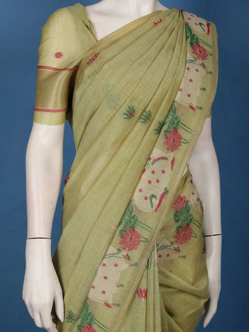 Light Green Floral Embroidered Design Pure Cotton Saree