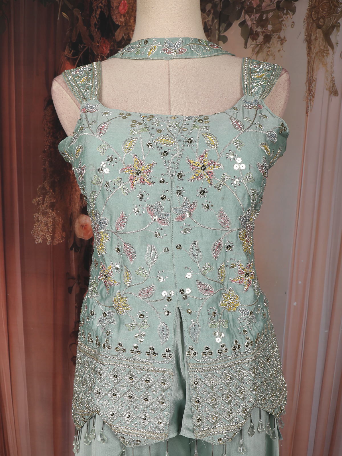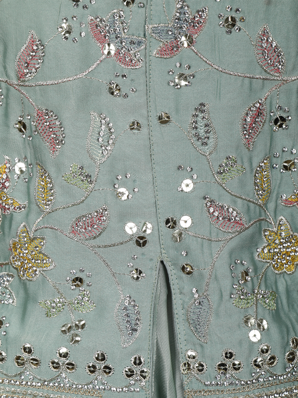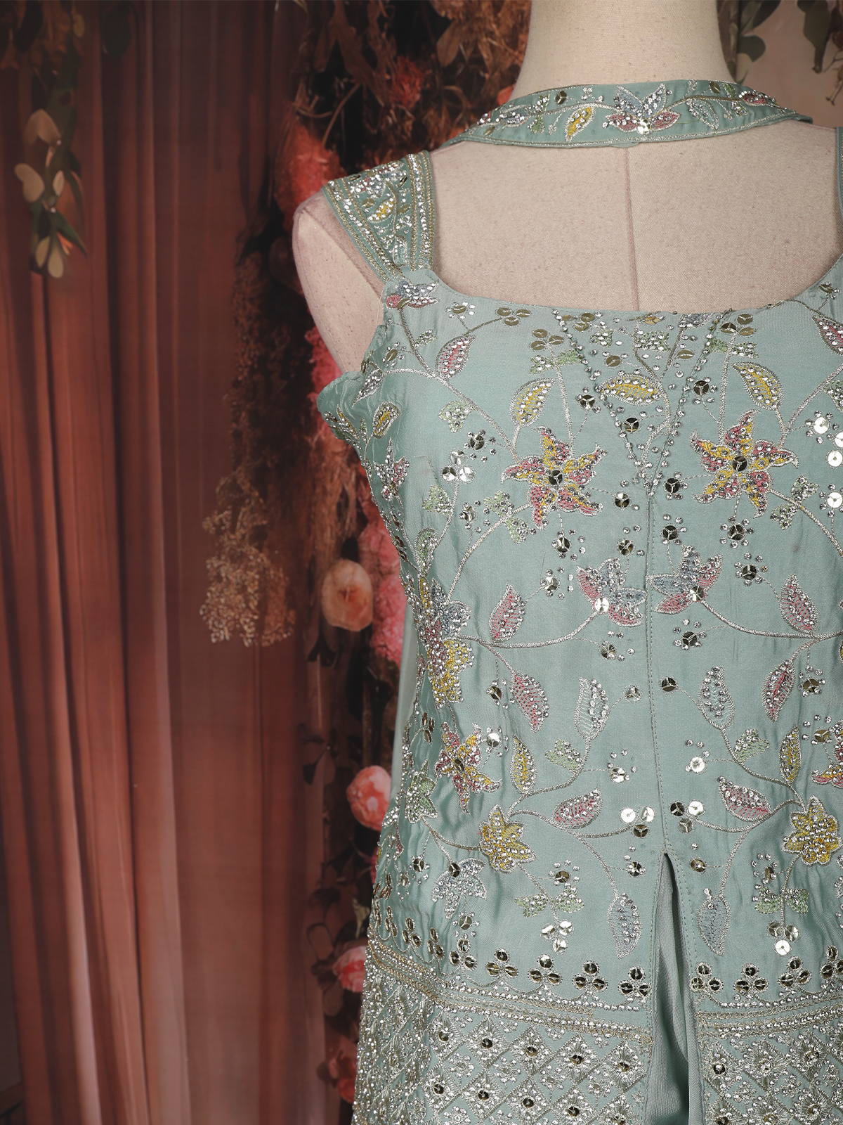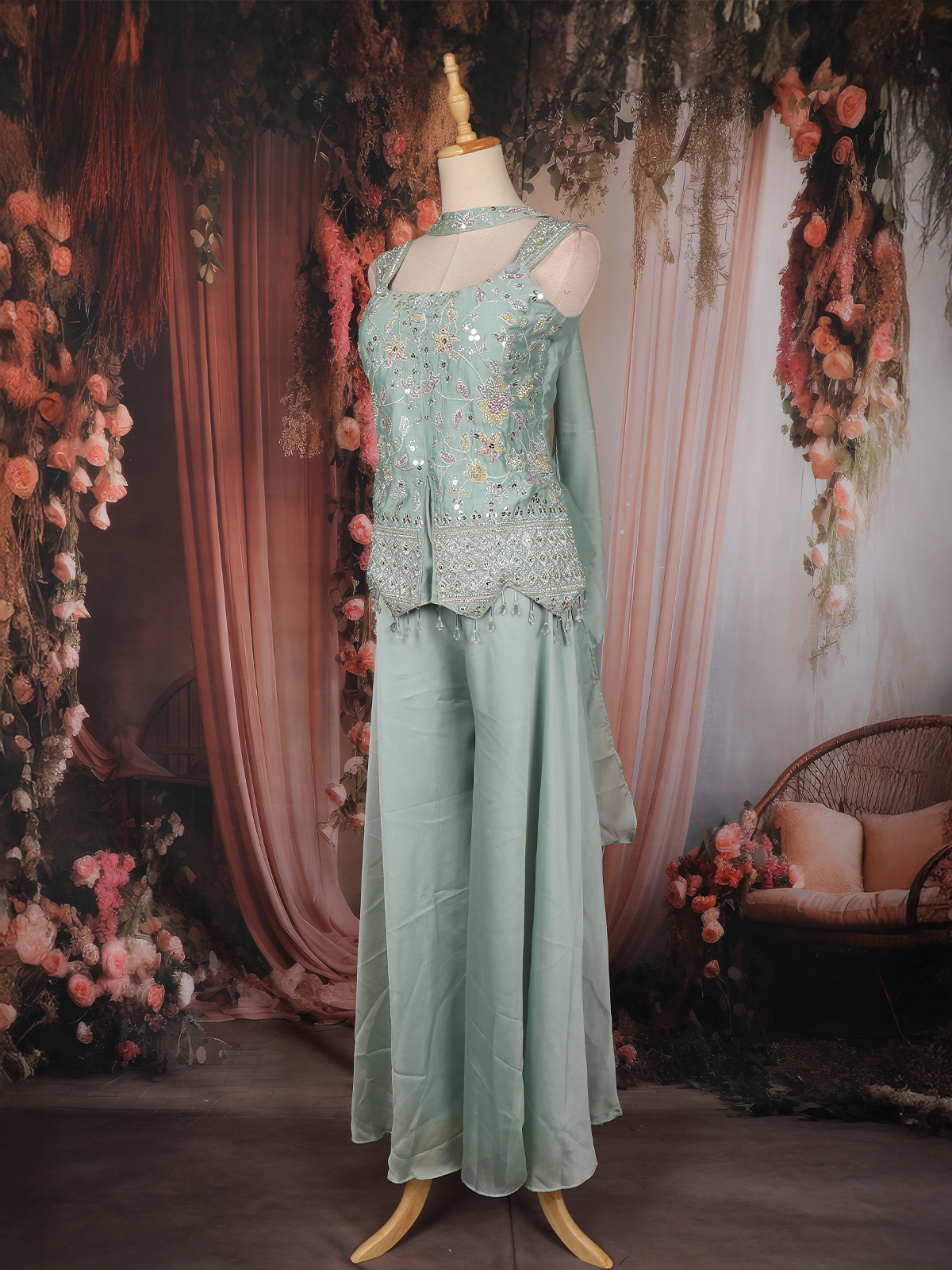 Light Green Floral Embroidered Georgette Palazzo Suit