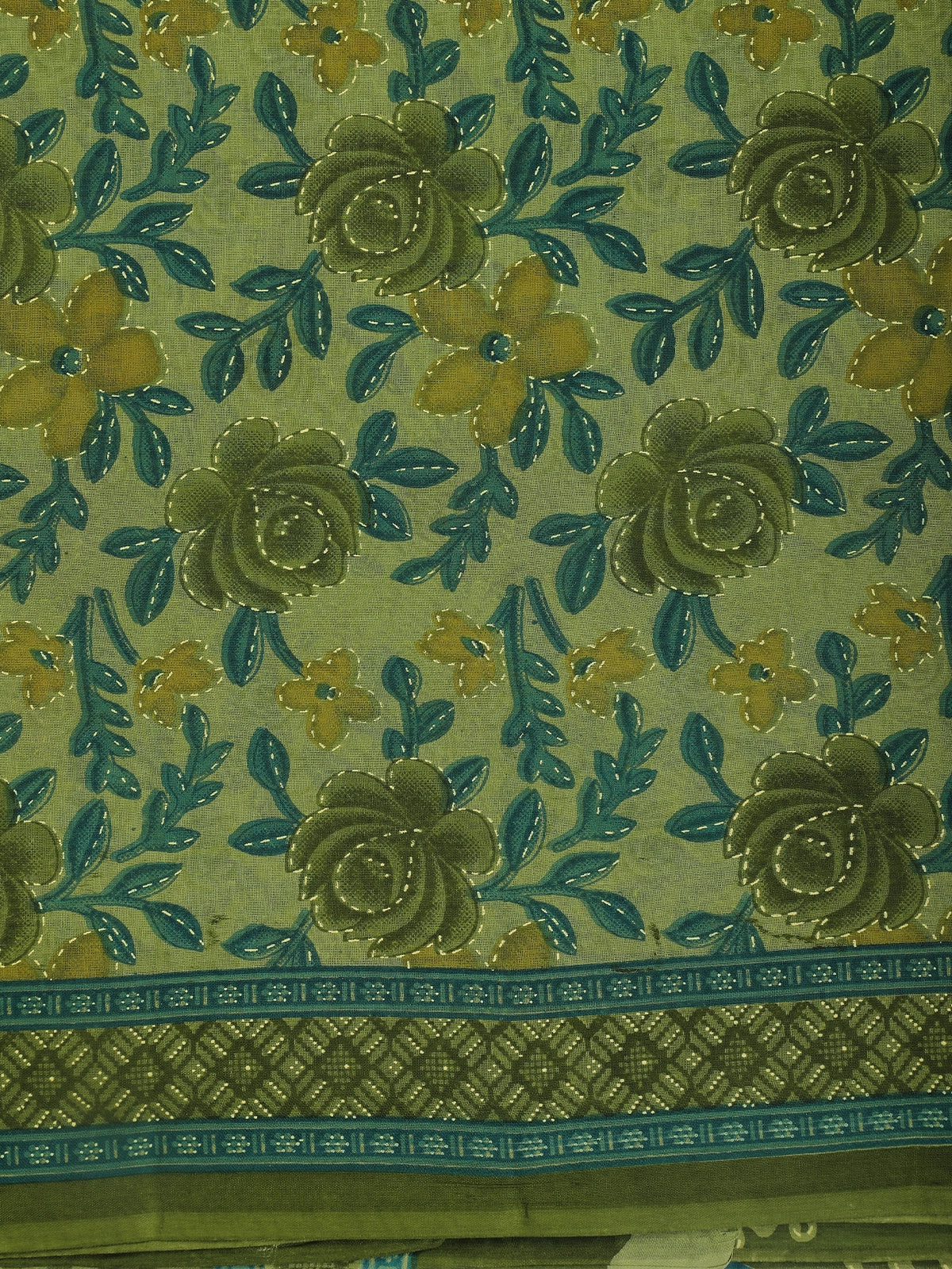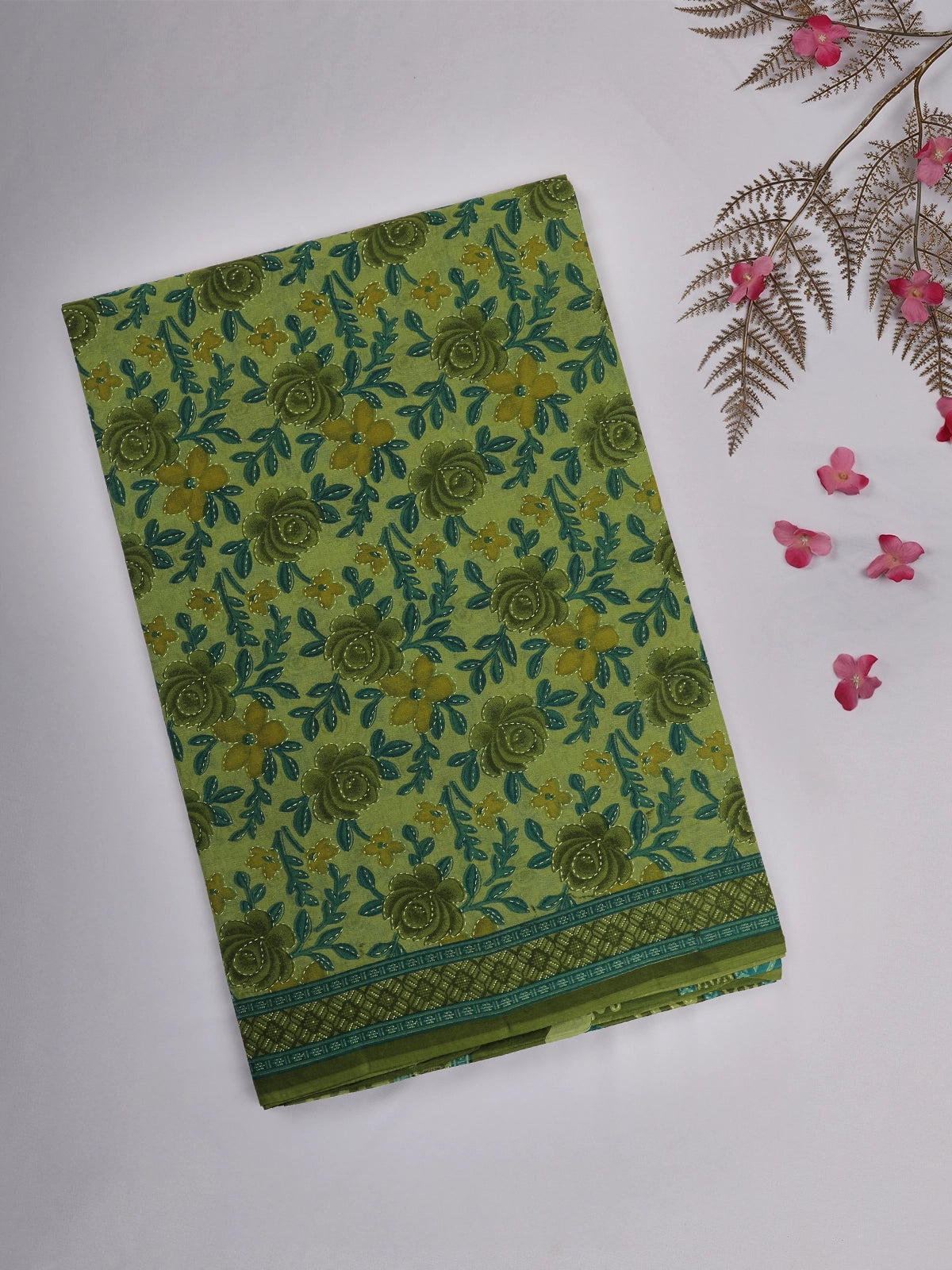 Light Green Floral Printed Design Karishma Cotton Saree
