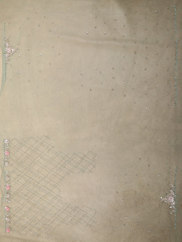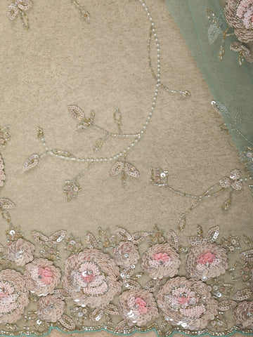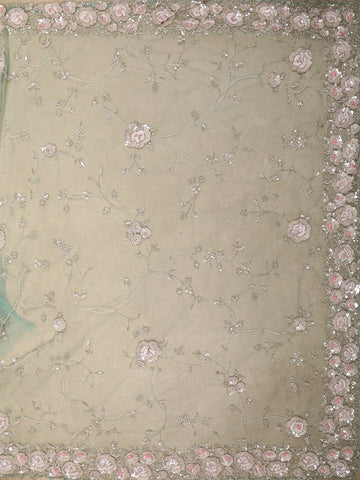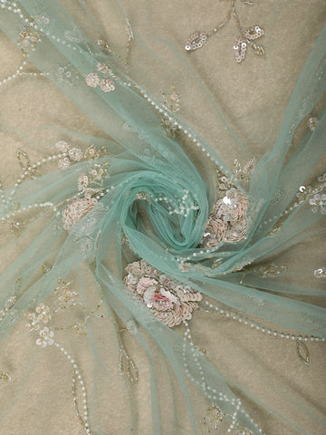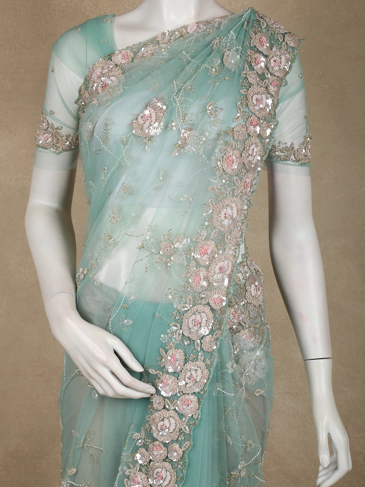 Light Green Floral Sequins and Beads Embroidered Designed Net Designer Saree