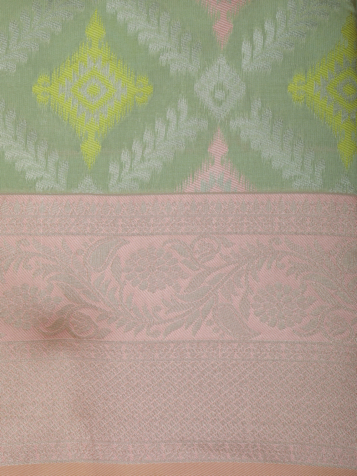 Light Green Geometric Zari Woven Design Tissue Silk Saree with Contrast Zari Border