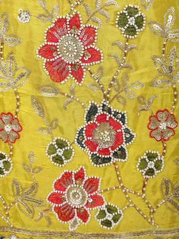Make a royal statement in this Light Green Peacock Embroidered Tissue Silk Palazzo Suit, a breathtaking ensemble that blends traditional opulence with a touch of modern finesse. Crafted from luxurious tissue silk, this outfit features exquisite floral -inspired embroidery highlighted with delicate zari, thread, and bead detailing — a true reflection of regal craftsmanship.