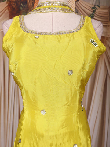 Light Green Floral Embroidered Design Tissue Silk Palazzo Suit with Dupatta
