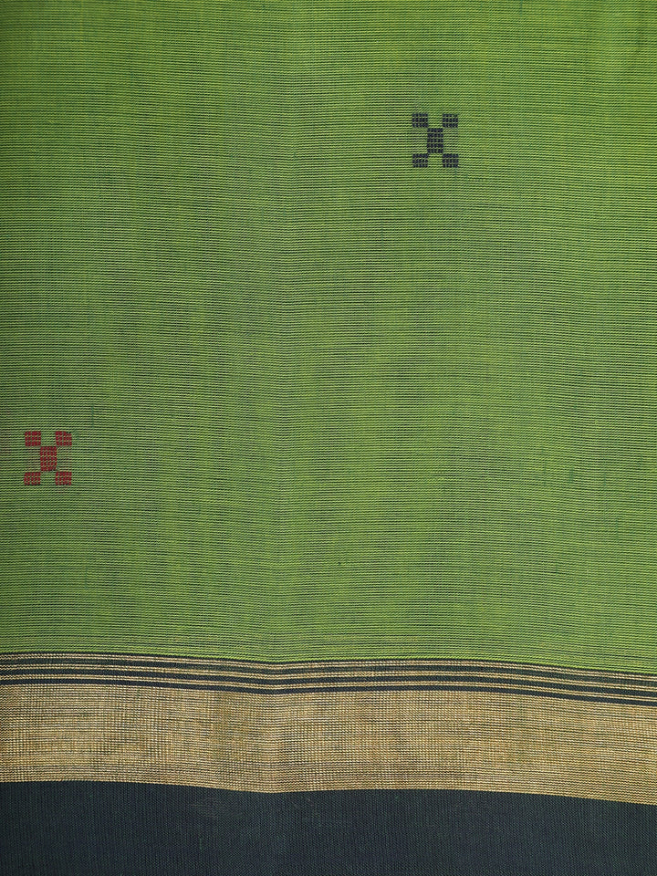 Simple, elegant, and timeless — this Light Green Cotton Saree is designed with minimal woven motifs spaced throughout the body, adding a hint of artistic detail without overwhelming the look. The soft, breathable texture of cotton ensures comfort throughout the day, making it an ideal choice for regular and office wear.
