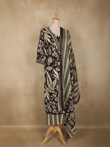 Light Grey Floral Printed Design Cotton Straight Cut Salwar Suit with Dupatta