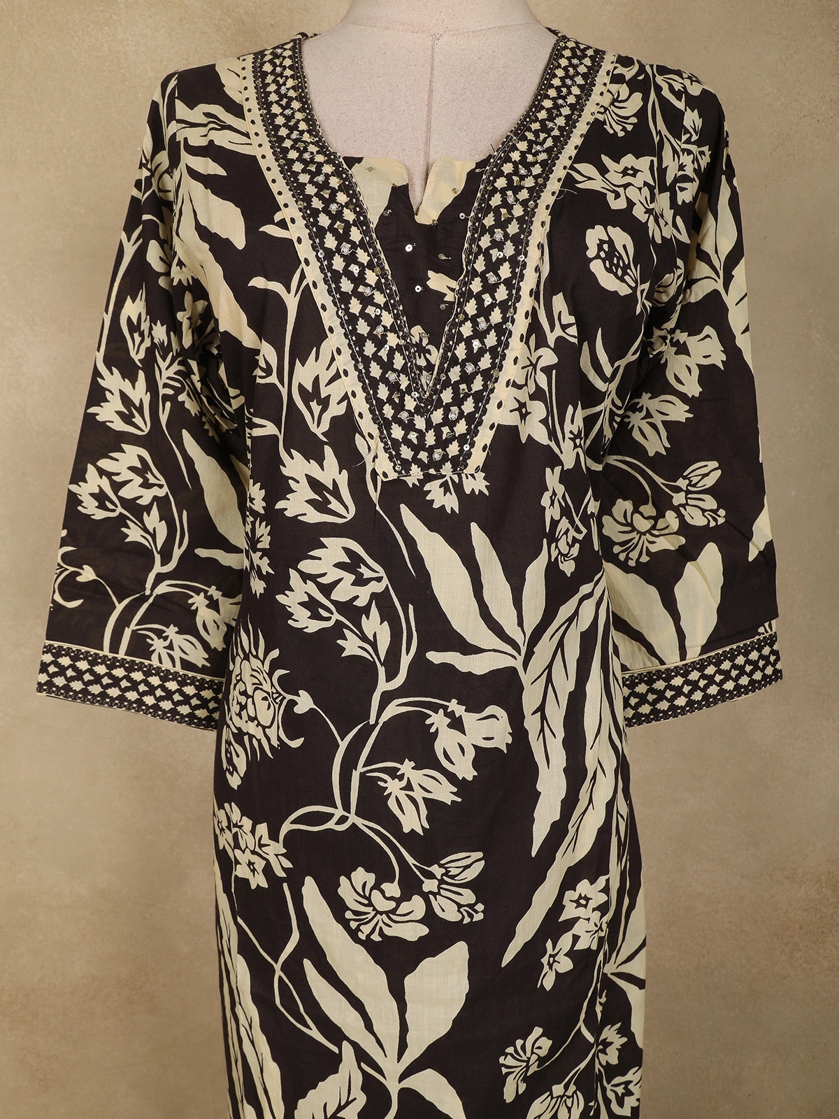 The kurta showcases a classic V-neckline,lending a subtle traditional charm, while the three-quarter sleeves ensure ease of movement and all-day comfort. The straight-cut silhouette offers a flattering fit, making it suitable for daily wear as well as relaxed office settings.