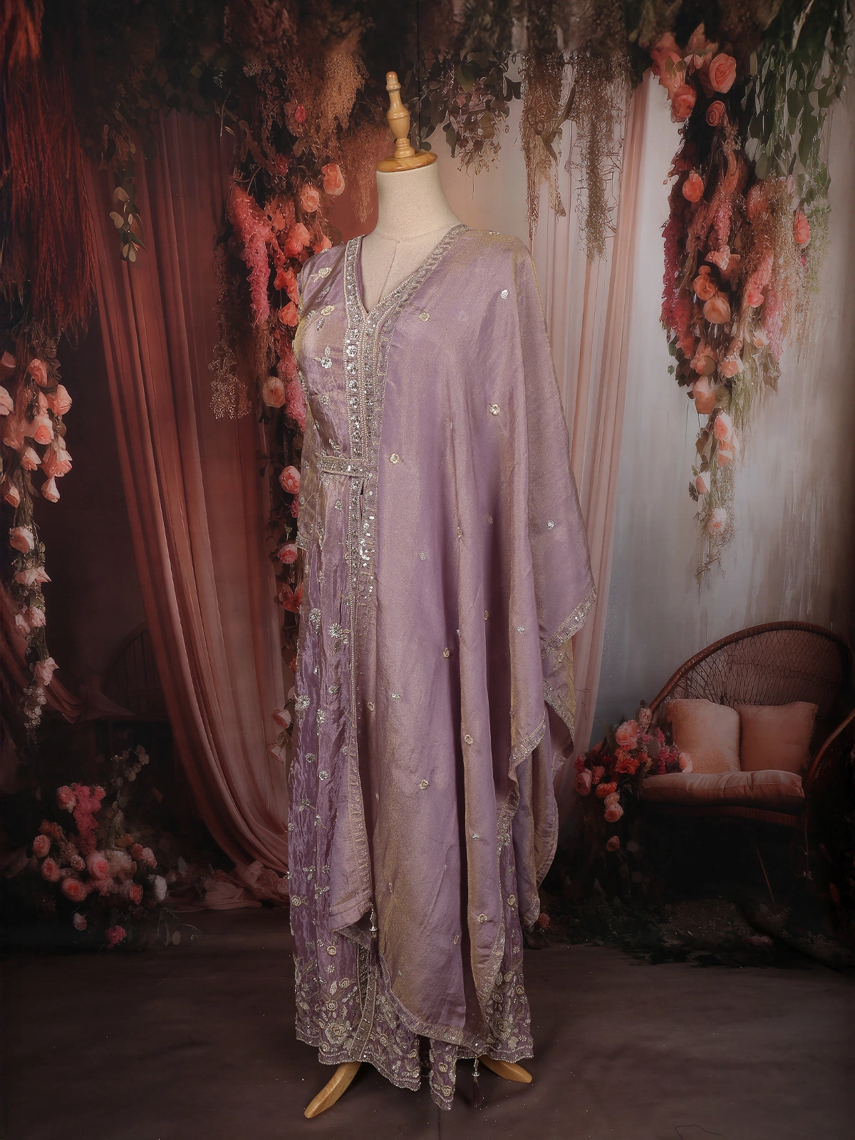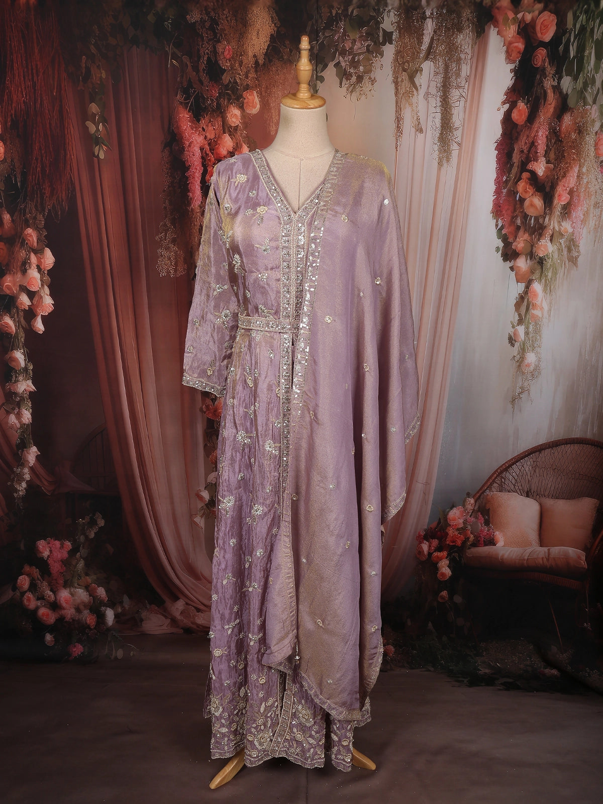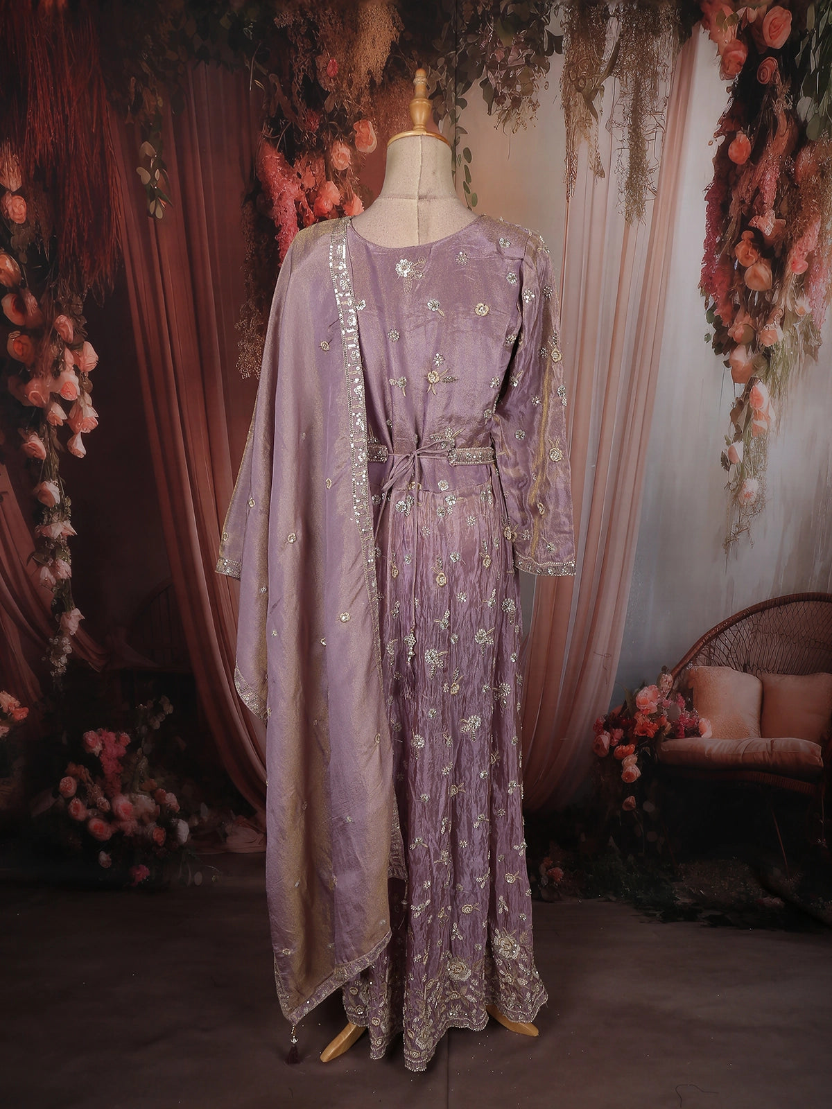 Light Lavender Floral Sequins and Beads Embroidered Design Tissue Organza Salwar with Dupatta