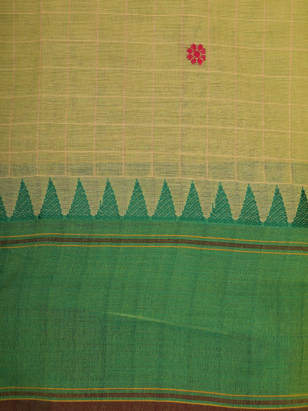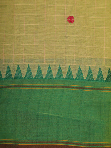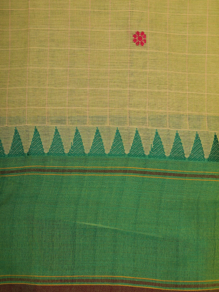 Light Olive Green Checked Design Cotton Saree with Green Temple Border