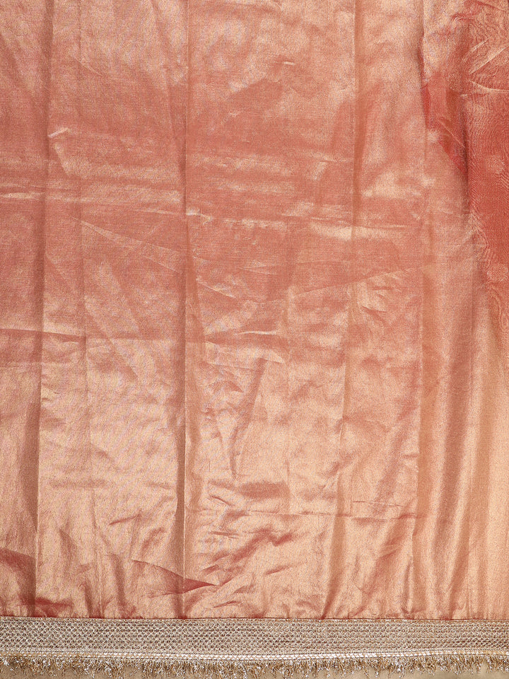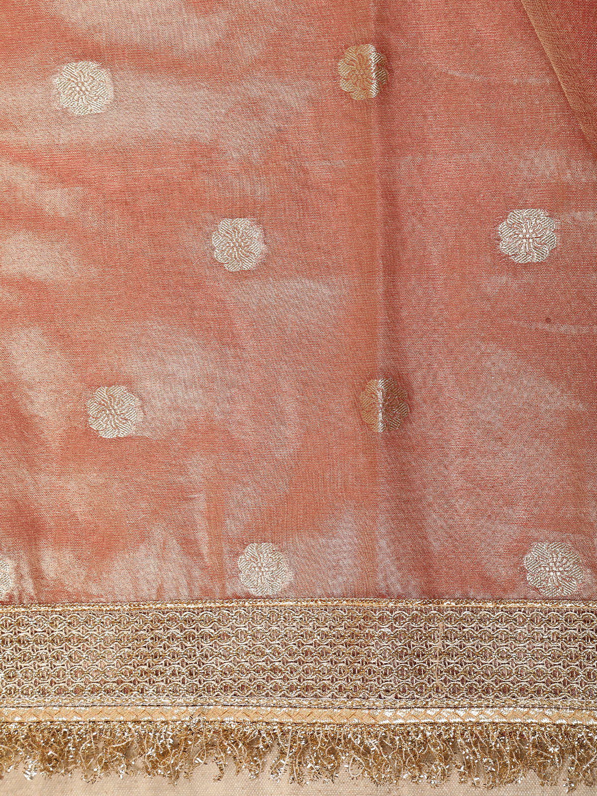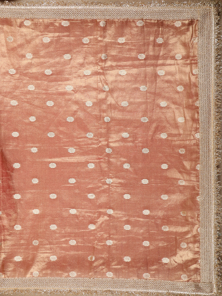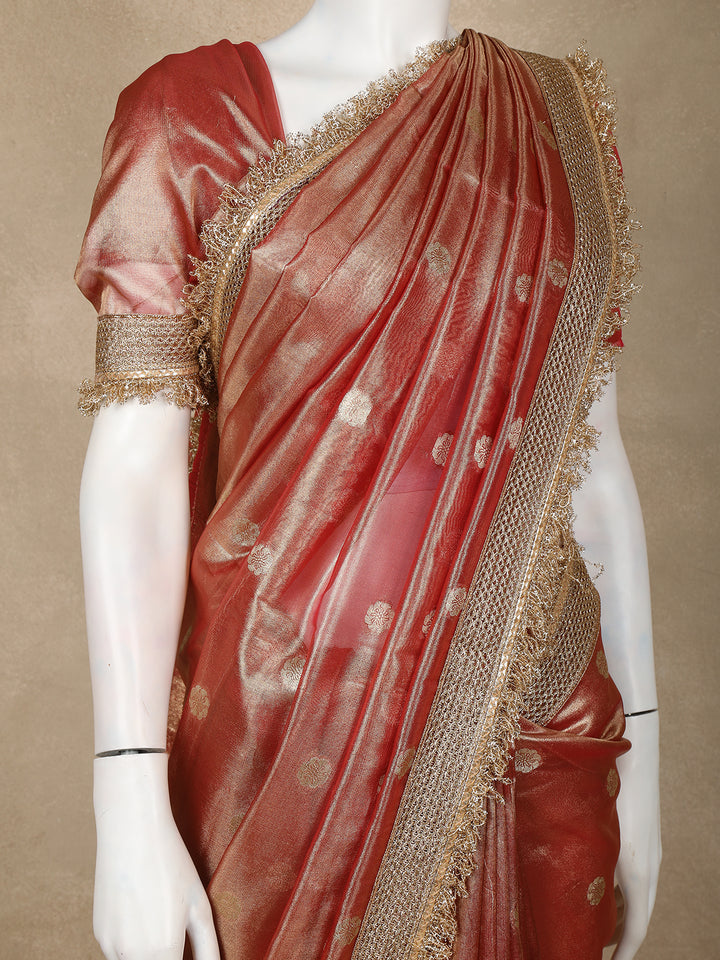 Light Orange Floral Butta Design Tissue Saree with Designer Lace Border