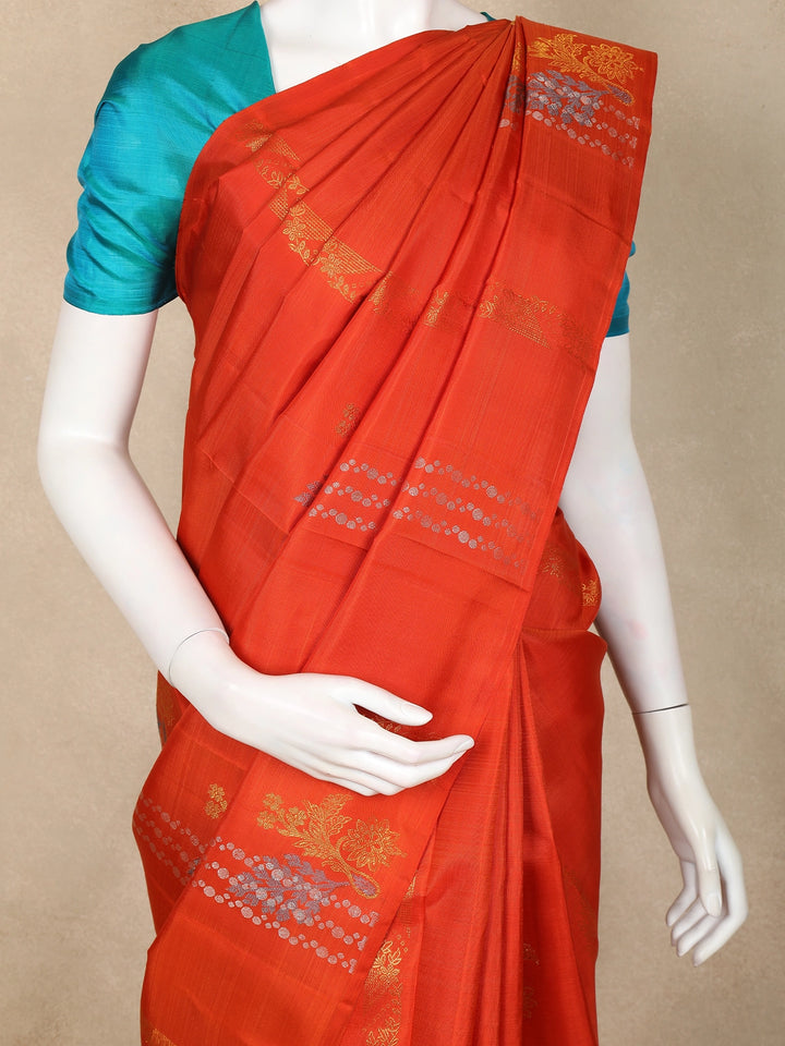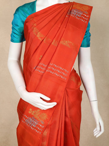 Light Orange Floral Design Kanchipuram Silk Saree with Solid Border