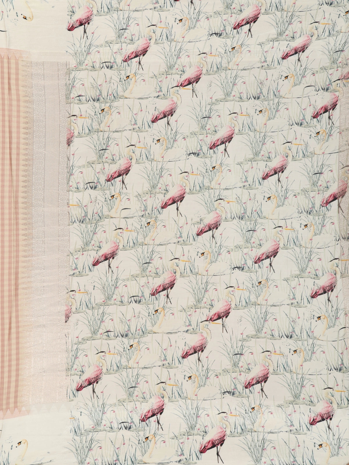 Light Peach Checked Printed Design Pure Crepe Silk Saree with Contrast Border