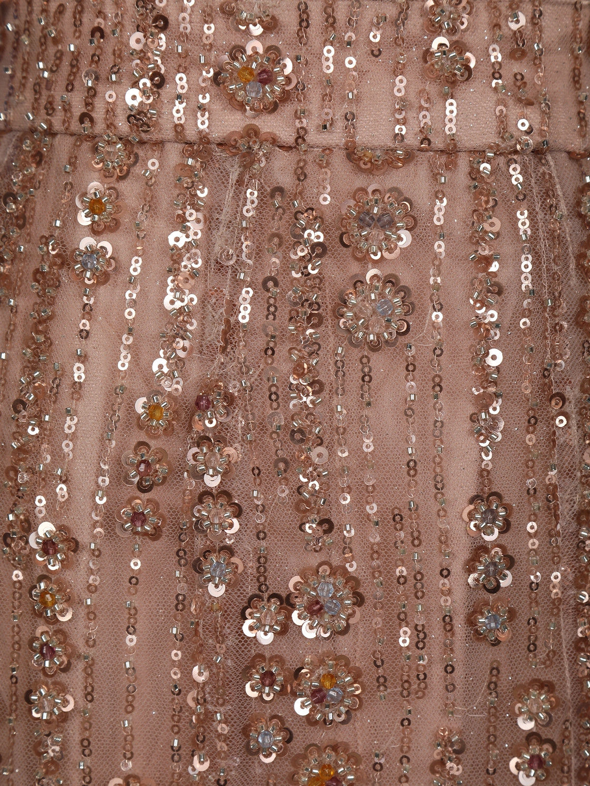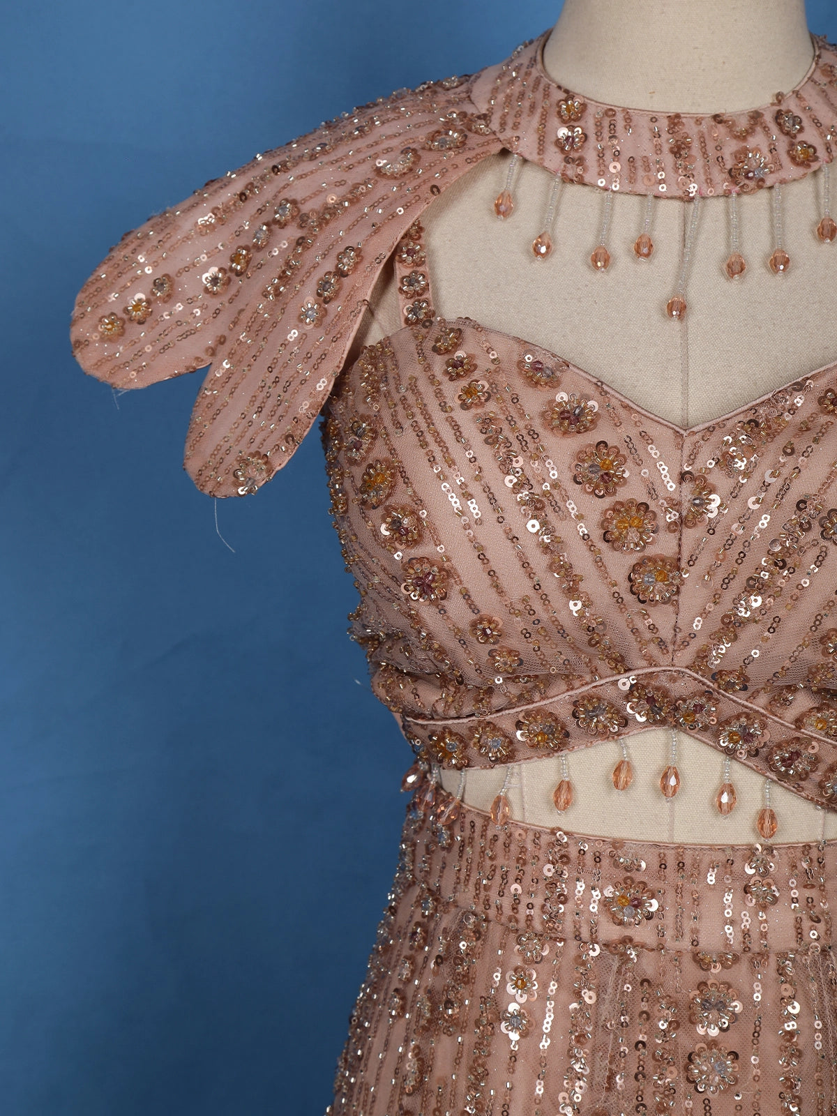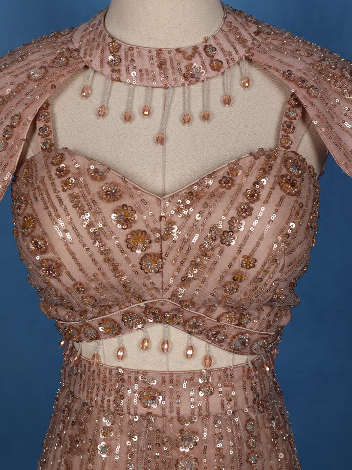 Light Peach Floral Sequins Embroidered Party Wear Mermaid Net Lehenga