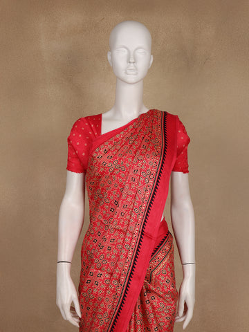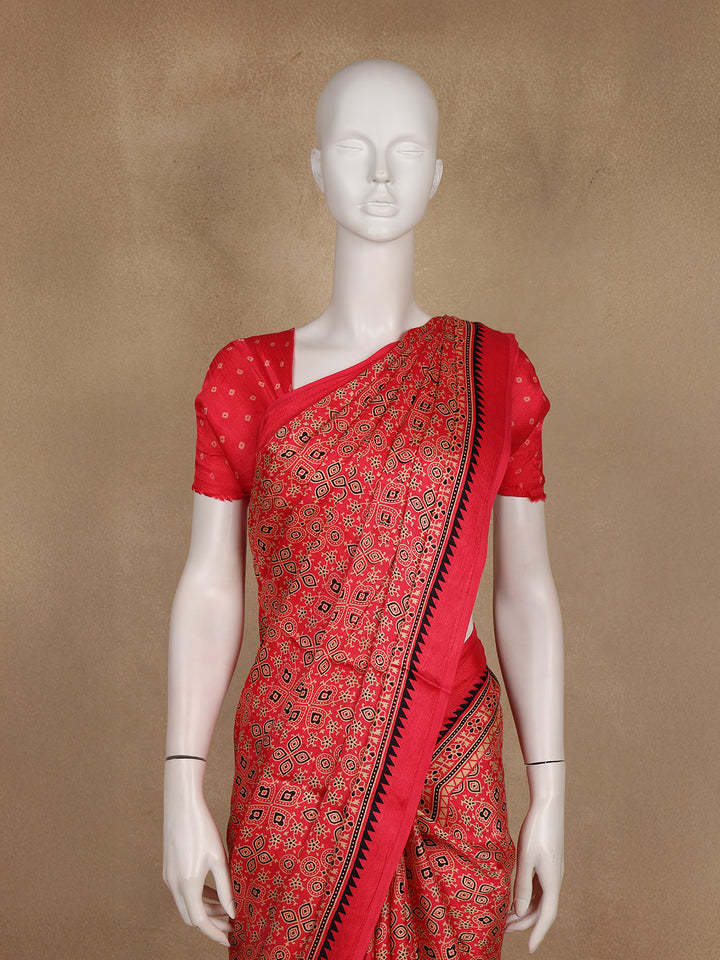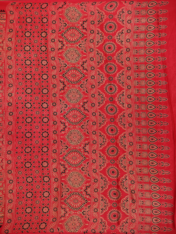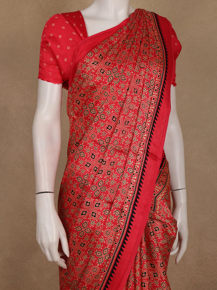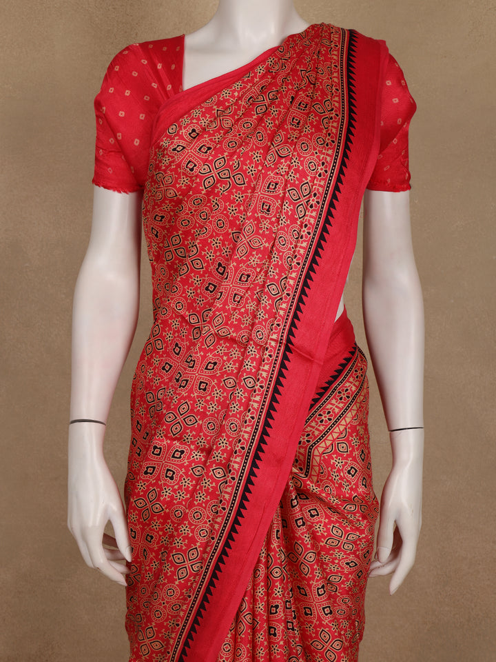 Soften your ethnic wardrobe with this Light Pink Ajrakh Print Mul Mul Cotton Saree, a beautiful expression of grace and tradition. Crafted from lightweight mul mul cotton, this saree features intricate Ajrakh-style block prints in red and beige that stand out elegantly on a soothing pink backdrop. The matching printed border and coordinated pallu add a seamless continuity to the design, offering a refined, handcrafted appeal.