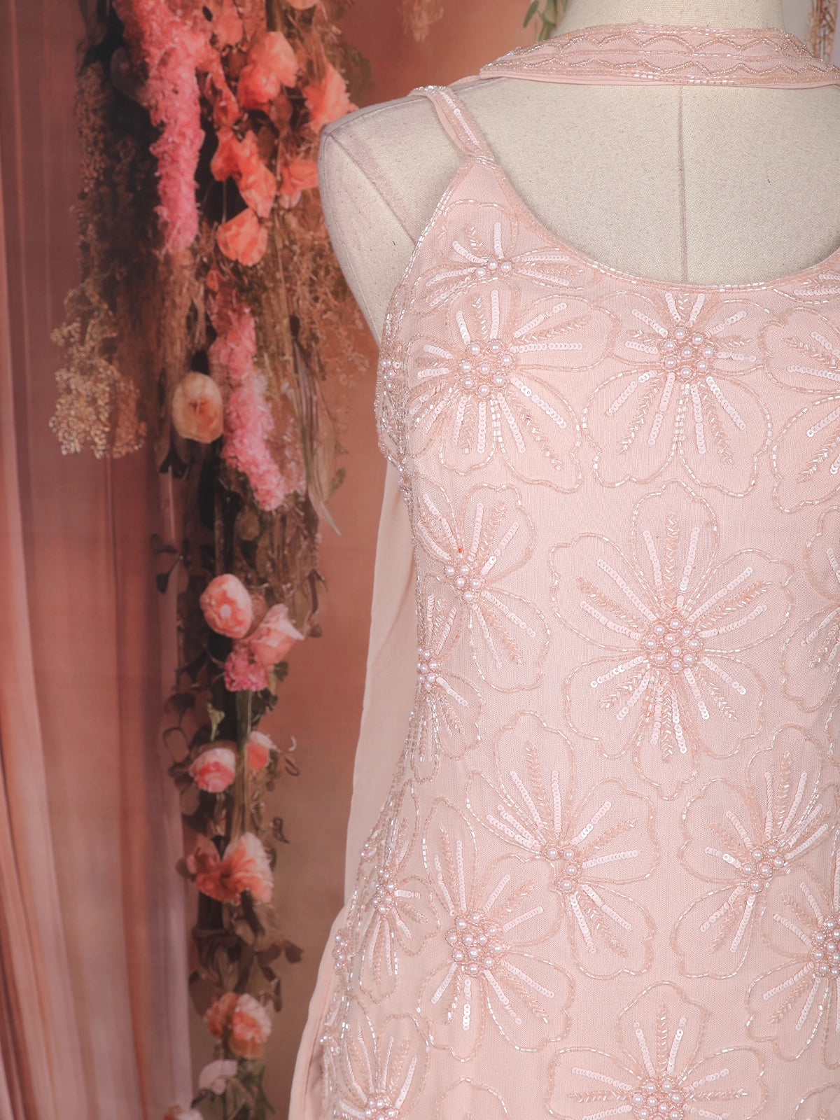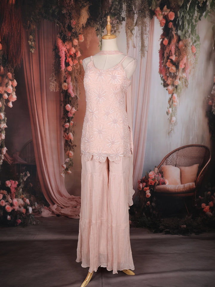 Light Pink Floral Sequins Embroidered Georgette Sharara Set