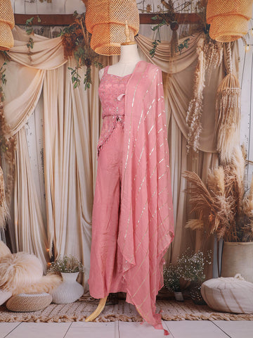 Light Pink Sequin and Bead Embroidered Organza Peplum Palazzo Suit with Dupatta