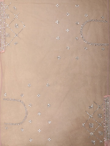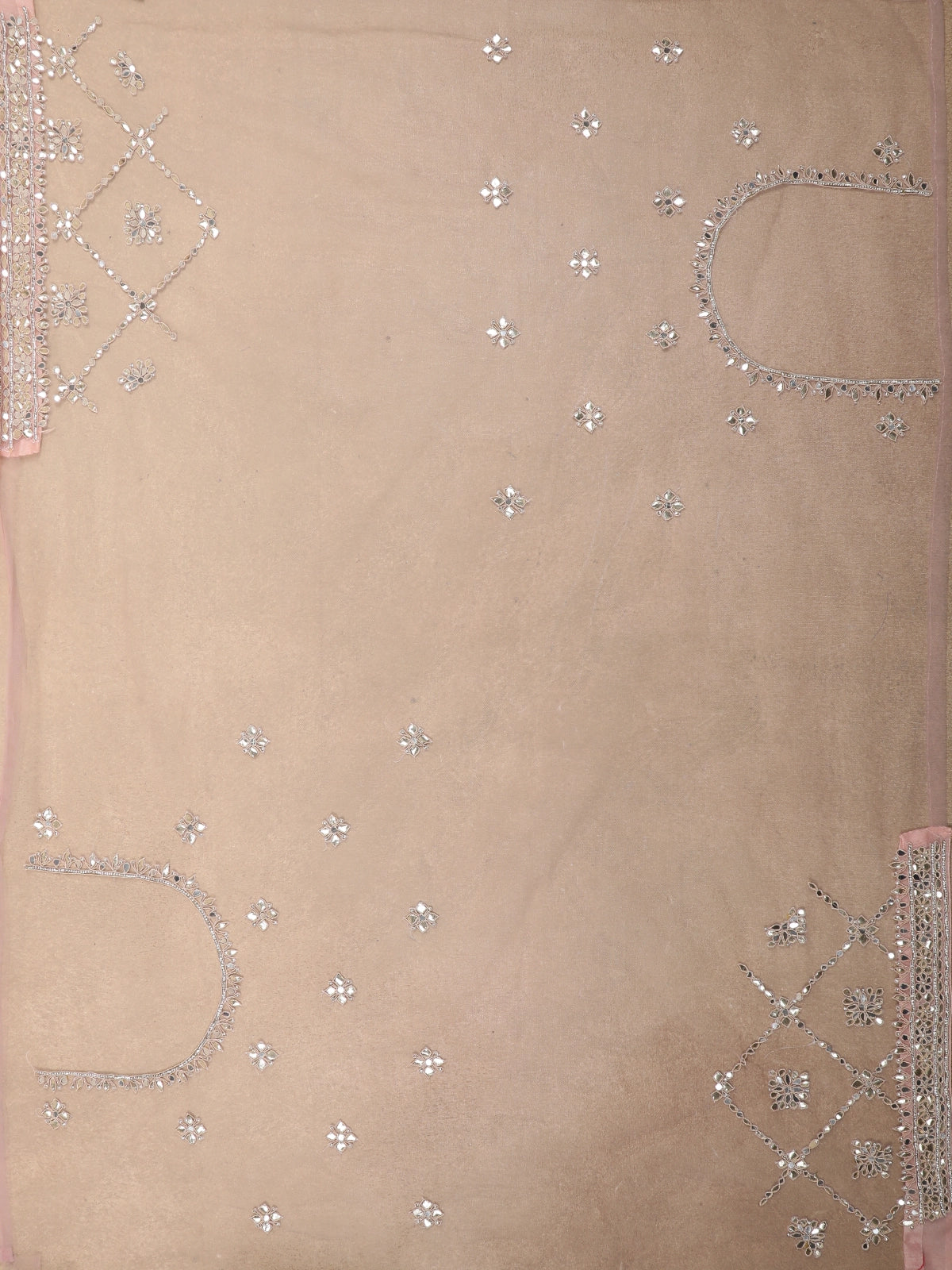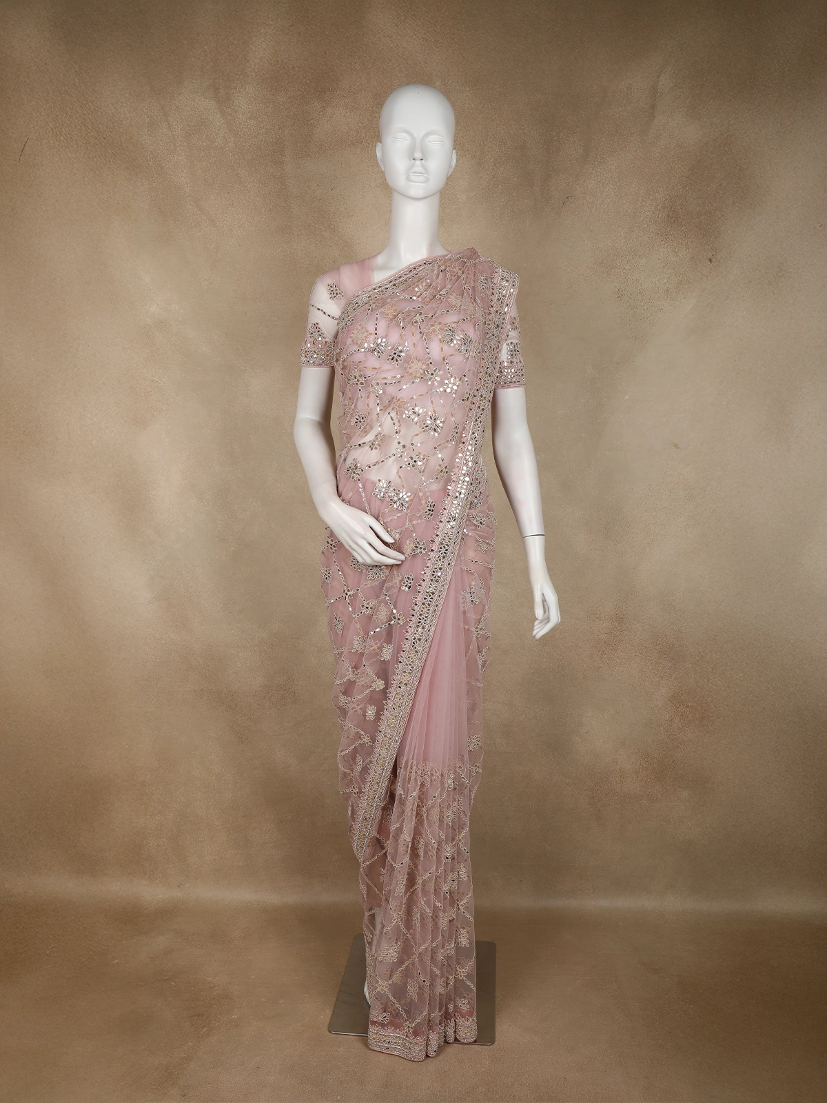 Light Pink Thread and Mirror Embroidered Design Net Designer Saree