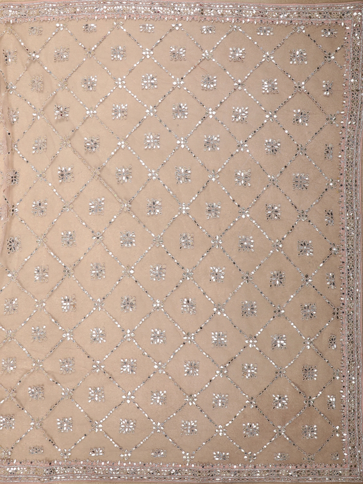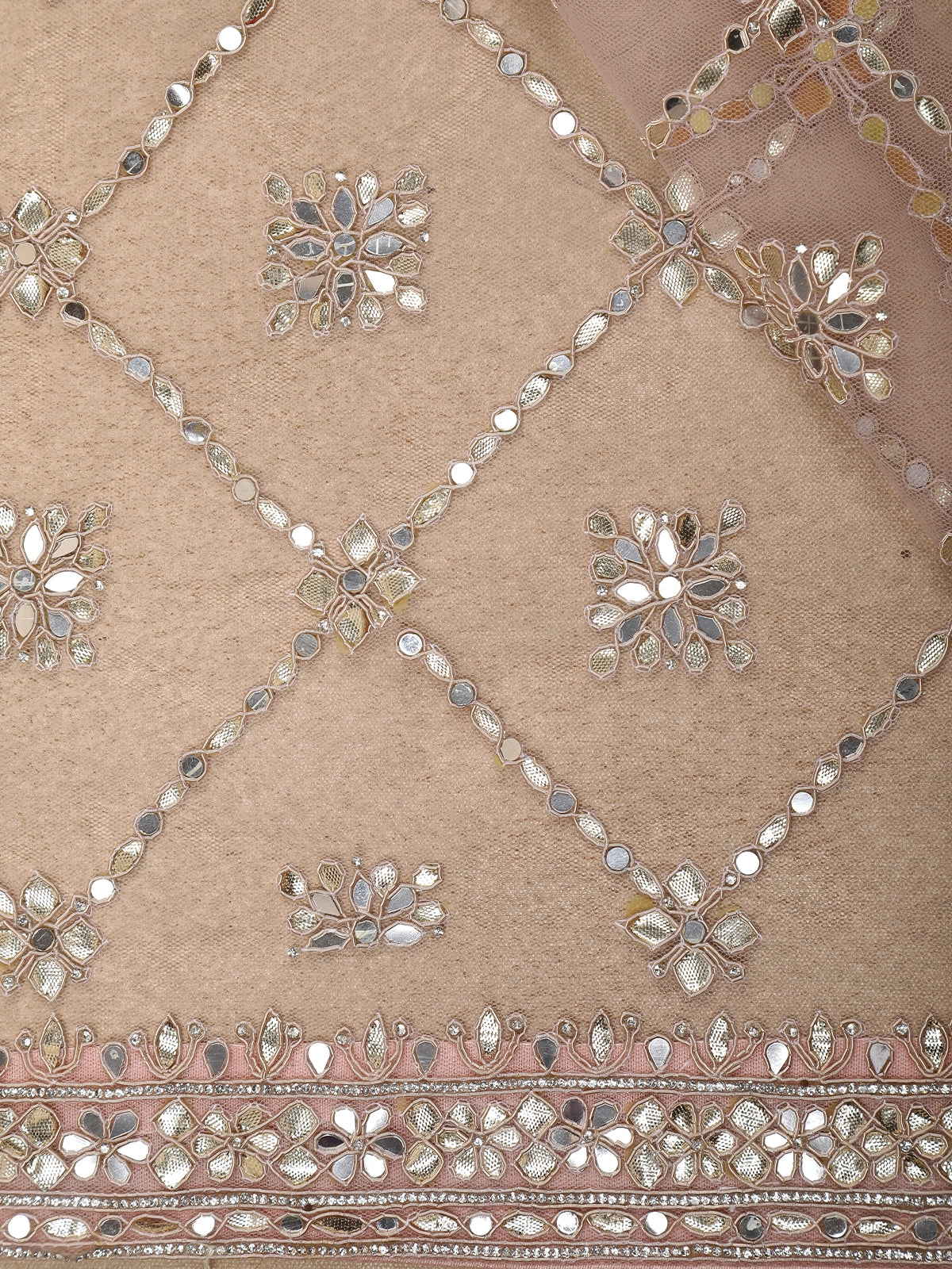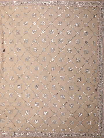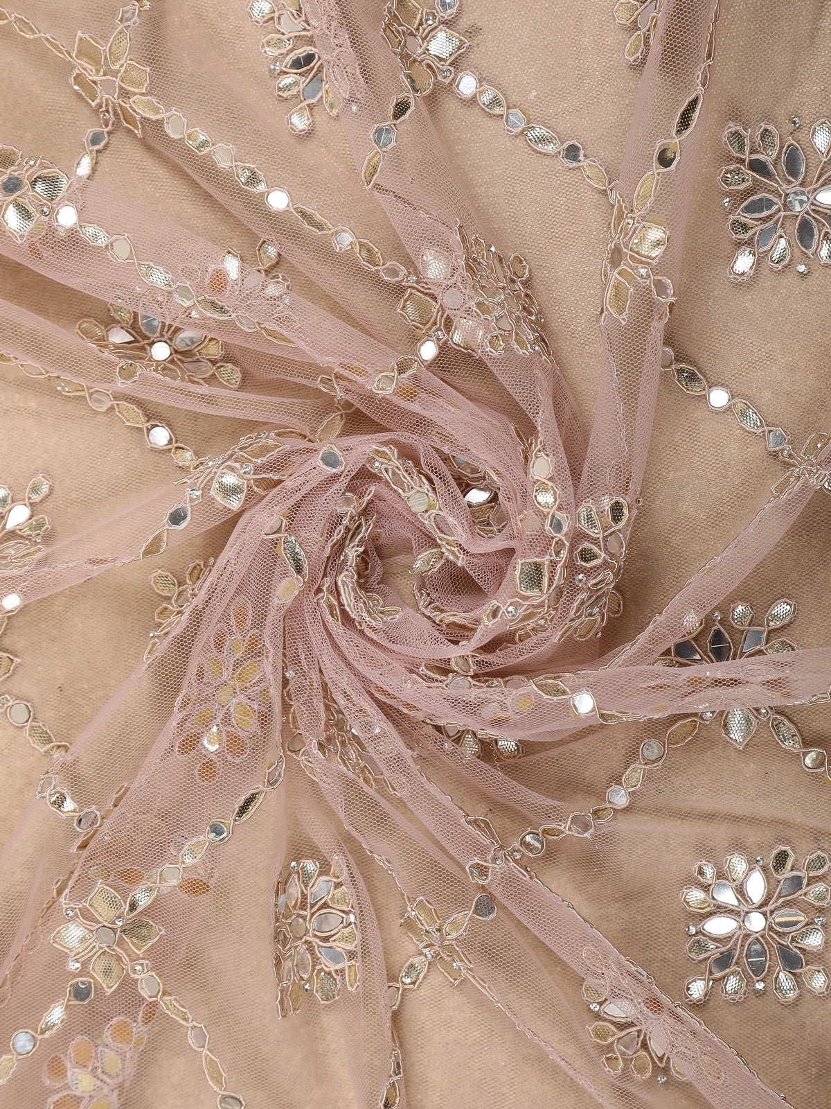 Light Pink Thread and Mirror Embroidered Design Net Designer Saree