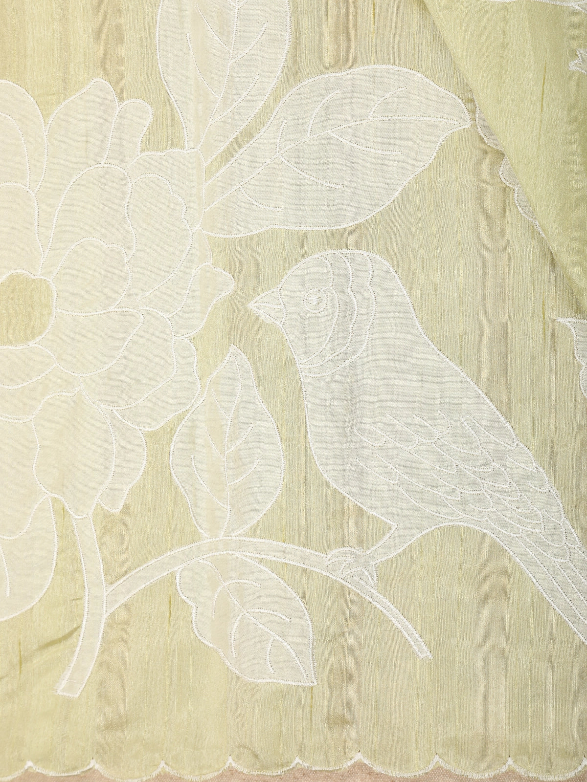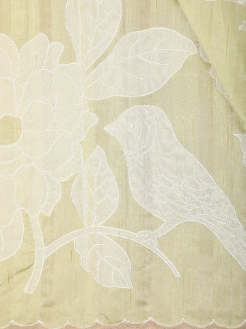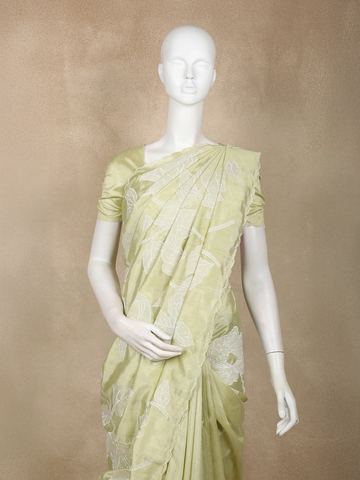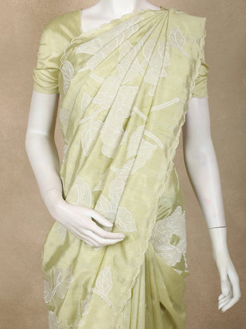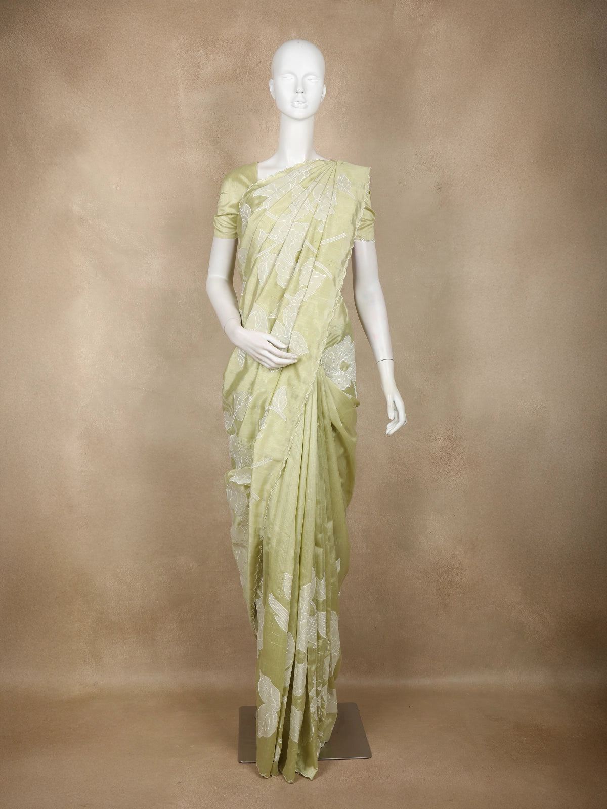 Light Pistachio Green Floral Design Tussar Saree with Applique Work