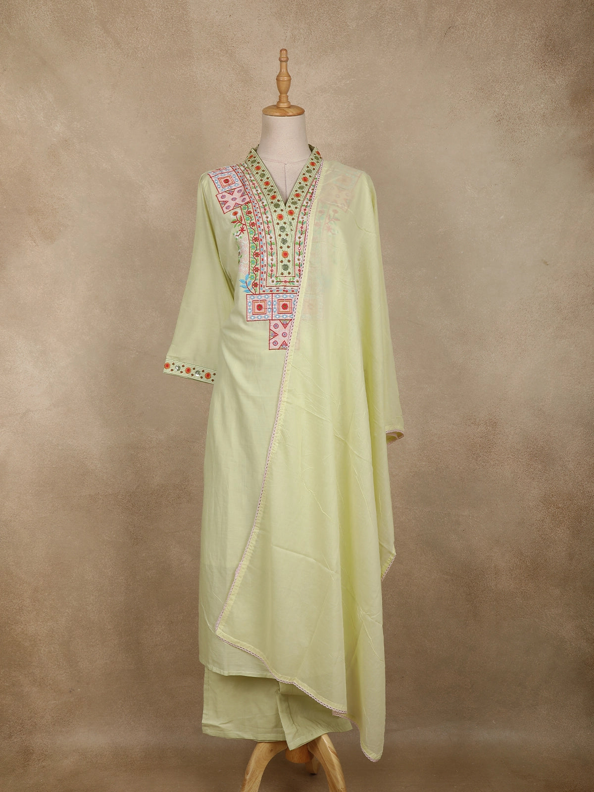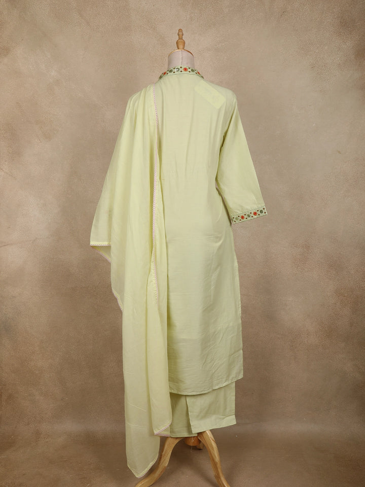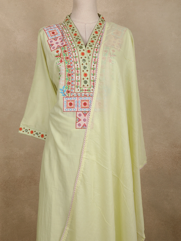 Light Pistachio Green Floral Embroidered Cotton Salwar Suit with Dupatta