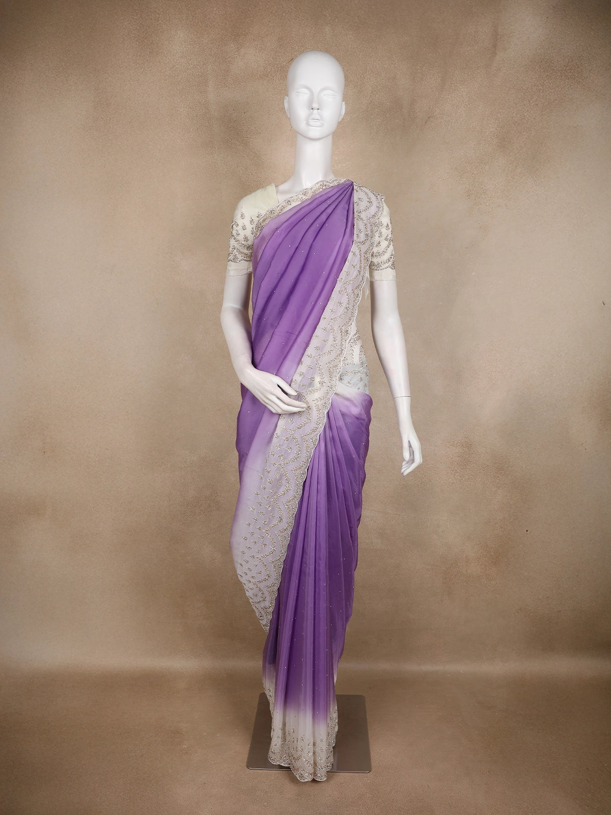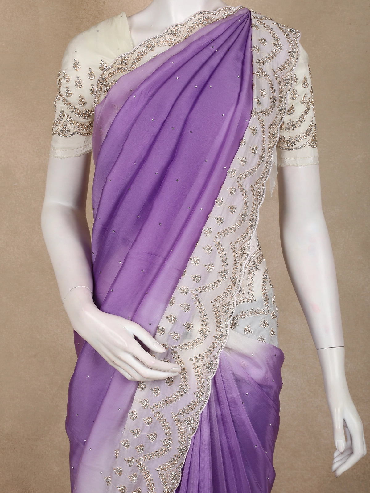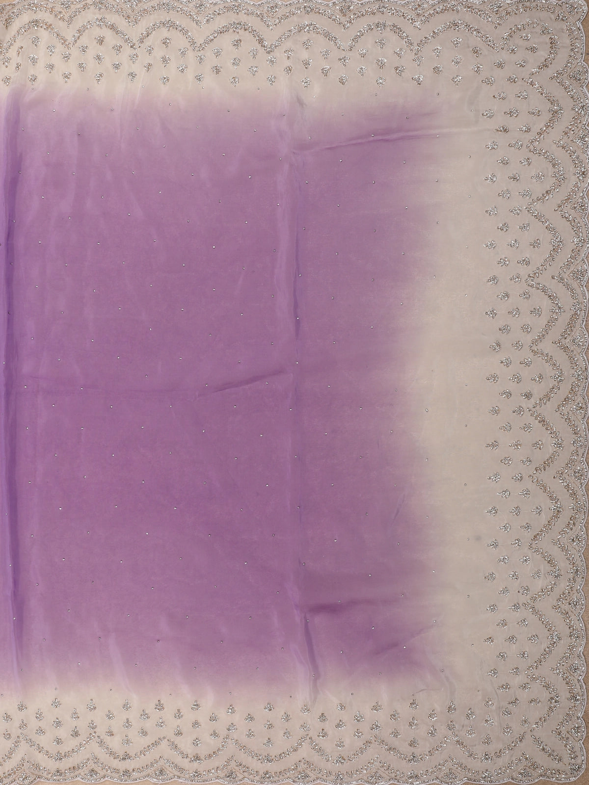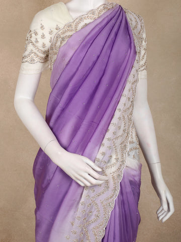 Light Purple Floral Beads Embroidered Design Satin Party Wear Saree