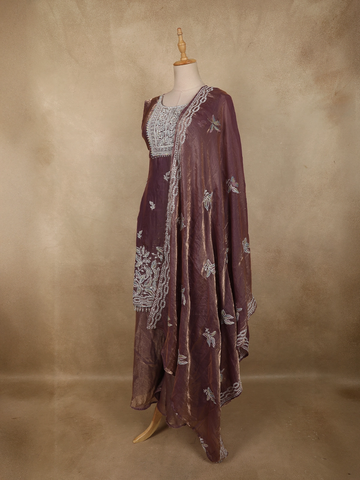 Light Purple Floral Sequins And Beads Embroidered Design Organza Palazzo Suit with Dupatta