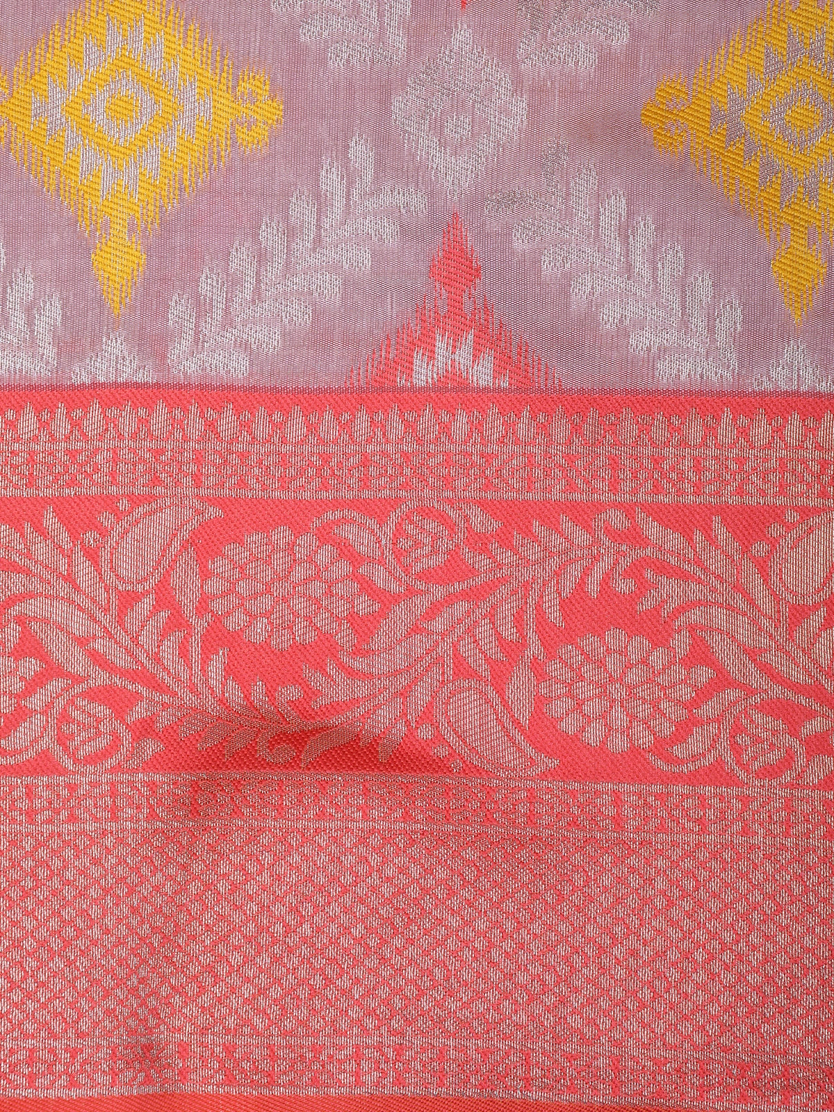 Light Purple Geometric Zari Woven Design Tissue Silk Saree with Contrast Zari Border