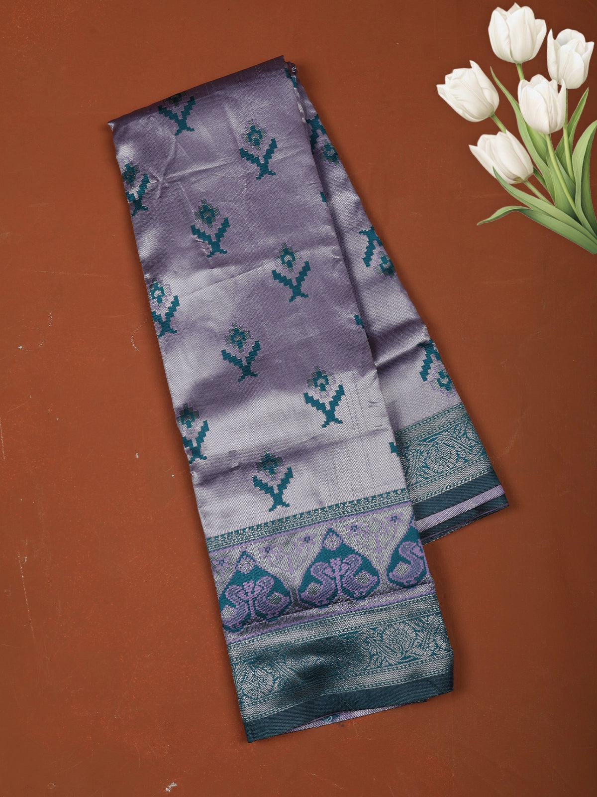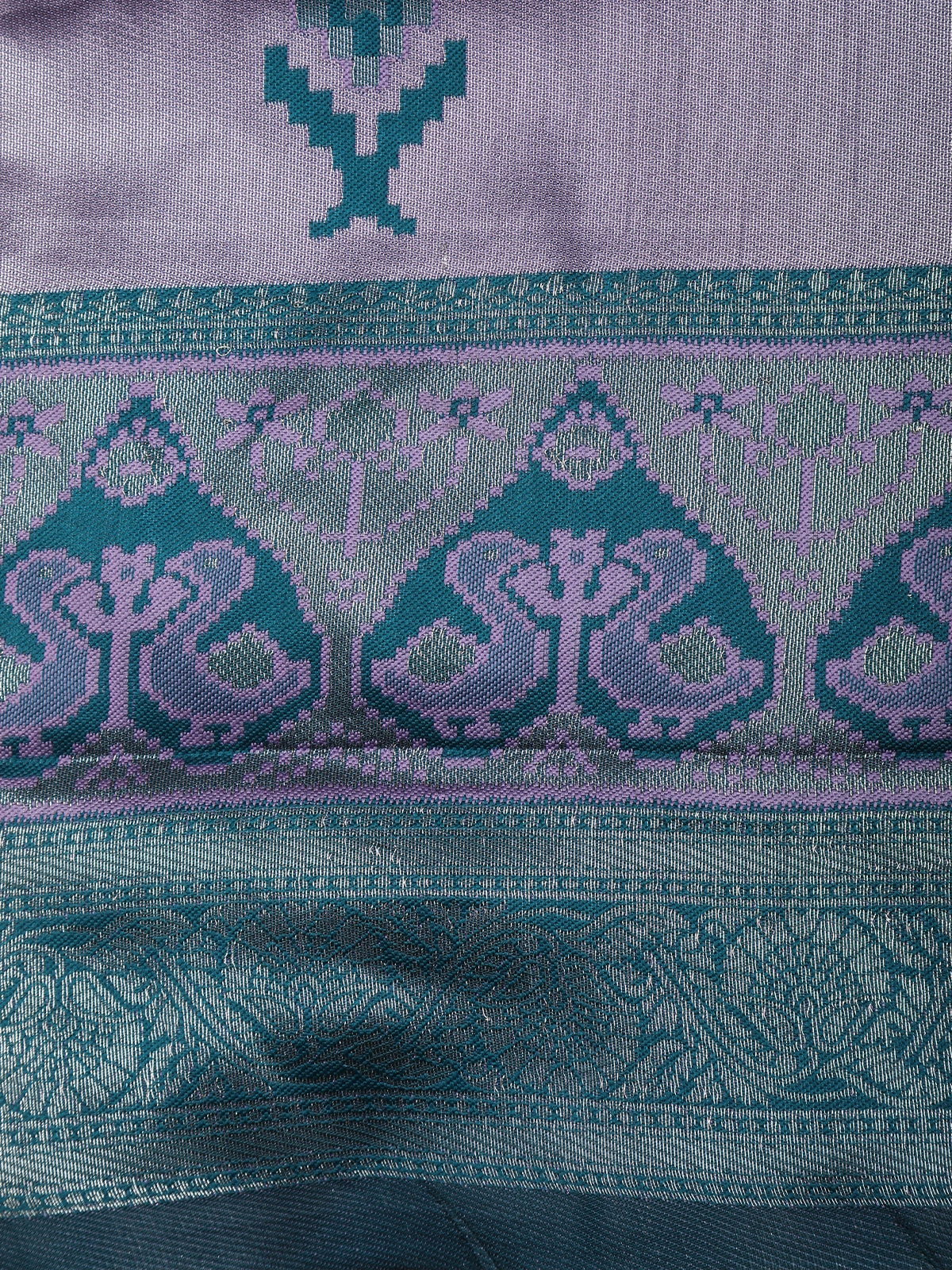 Light Purple Ikat Zari Woven Design Art Silk Saree with Contrast Zari Border