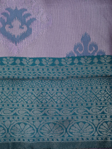 Light Purple Ikat Zari Woven Design Art Silk Saree with Unstitched Designer Blouse