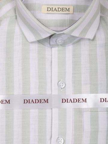 Light Sage Green Striped Design Cotton Kid's Shirt
