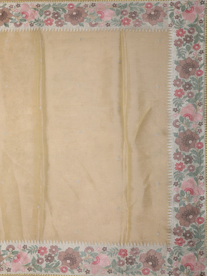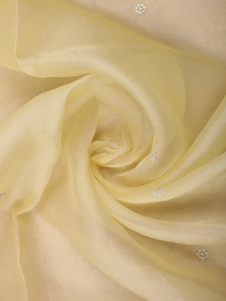 Light Yellow Floral Butta Design Organza Saree