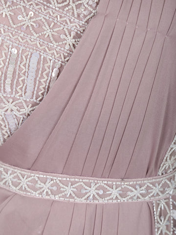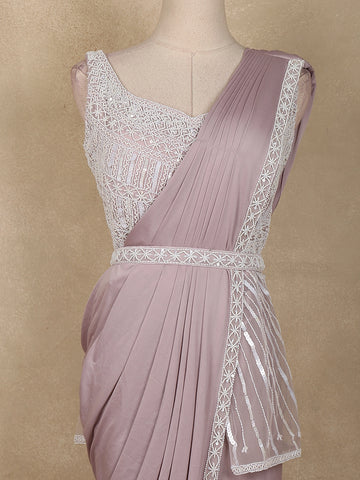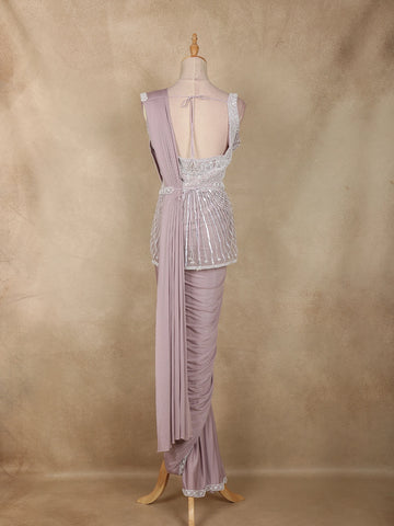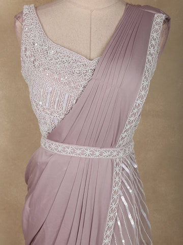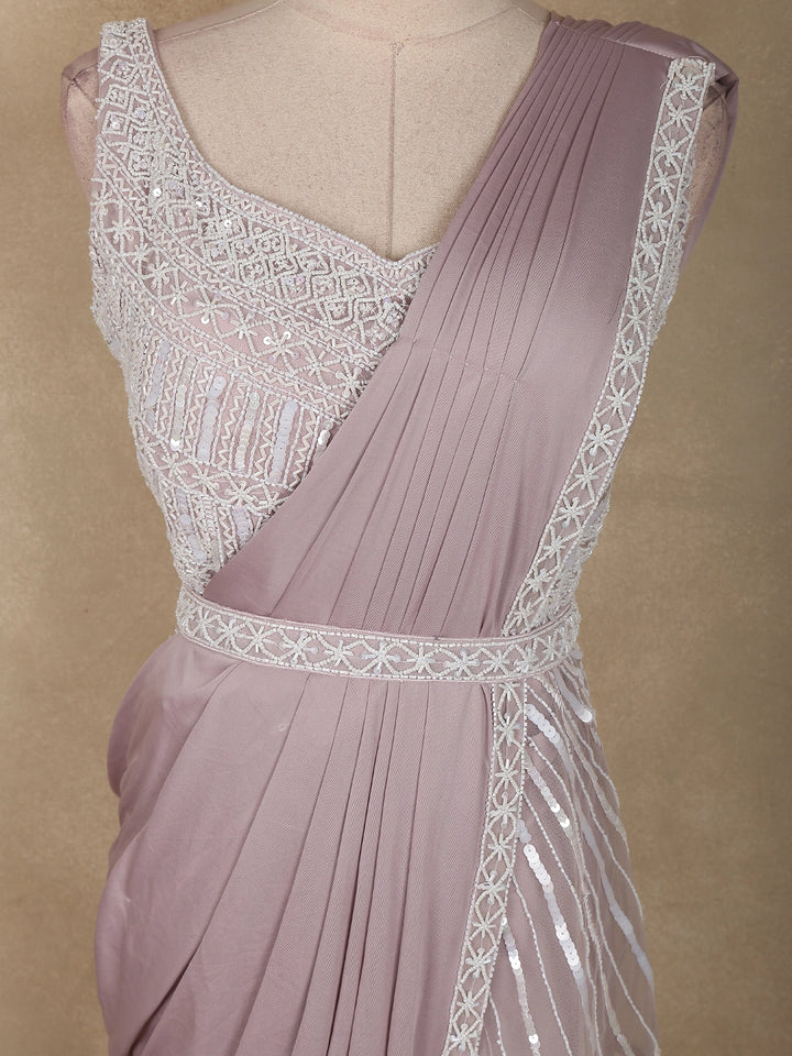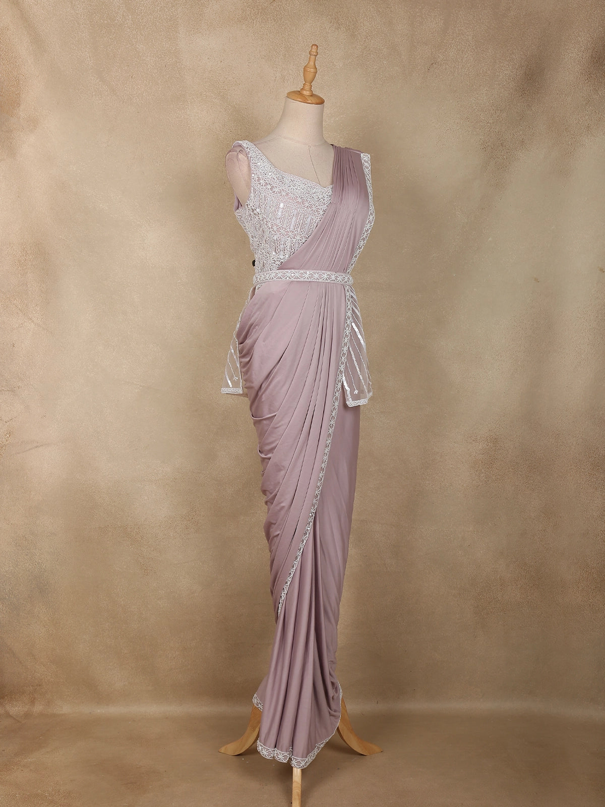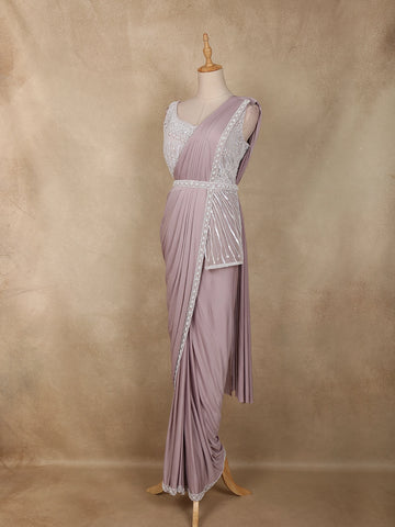 Lilac Heavy Sequins Embellished Design Satin Ready To Wear Saree