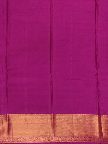 The rich contrast pink zari border and pallu elevate the drape with a royal touch, adorned with traditional patterns that reflect heritage artistry. Crafted from pure Kanchipuram silk, the saree offers a luxurious texture with a graceful fall, making it perfect for weddings, festive gatherings, and auspicious celebrations.