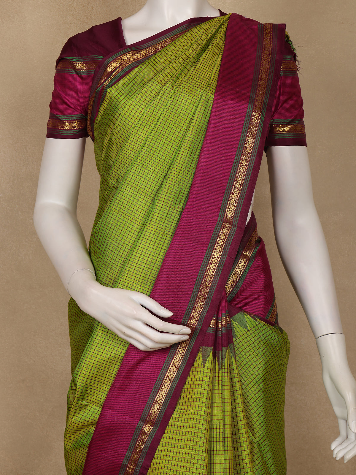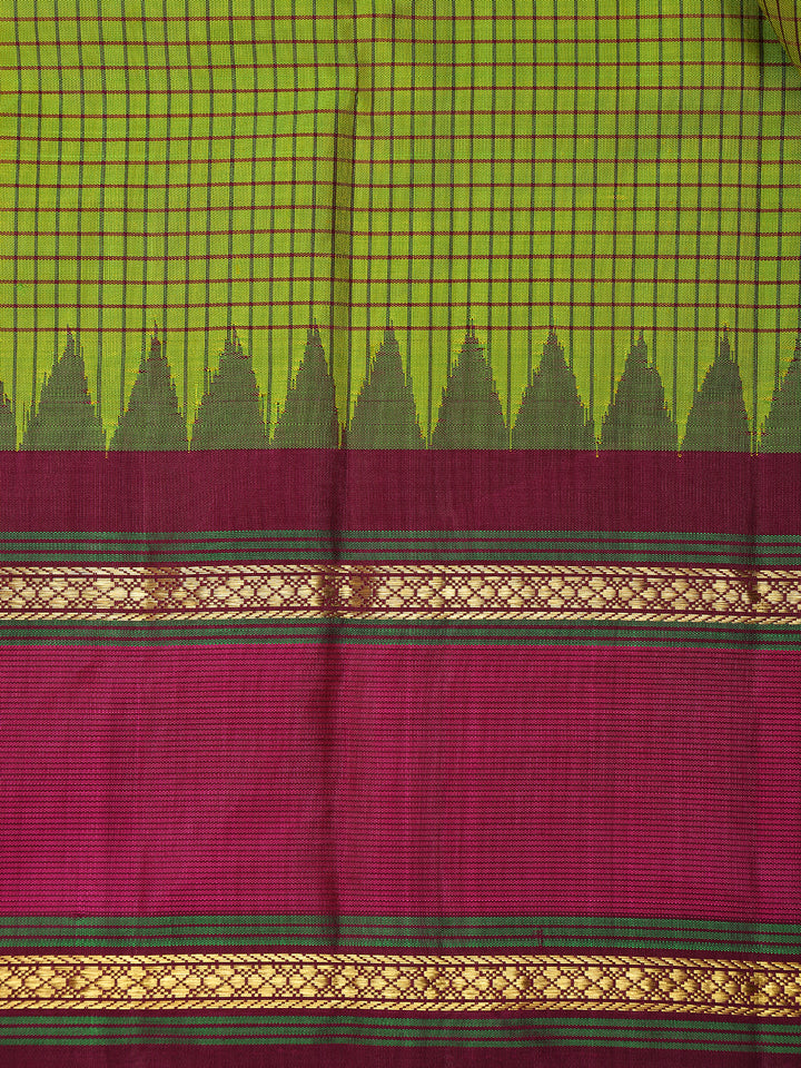 Lime Green Checked Woven Pure Kanchipuram Silk Saree