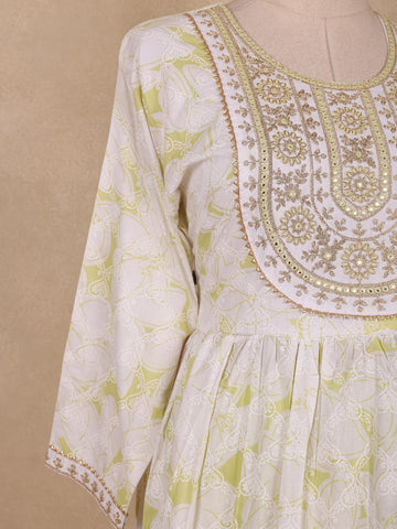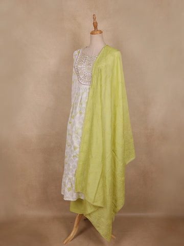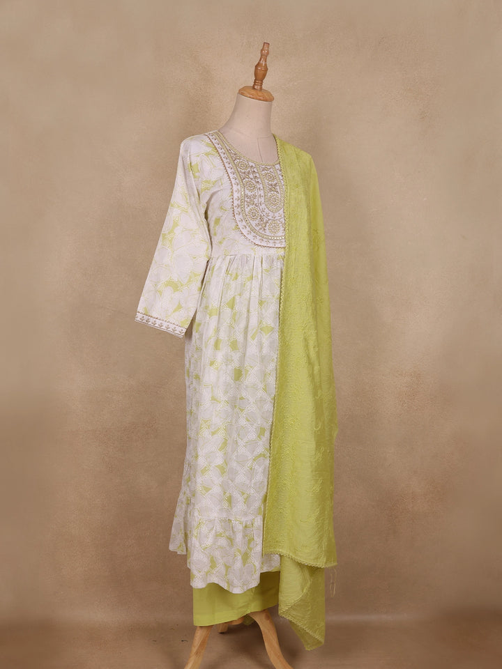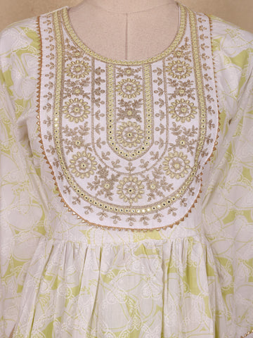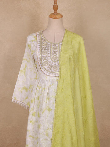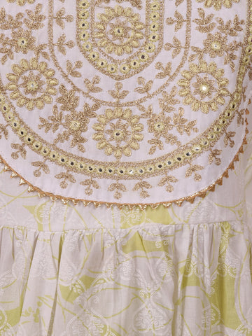 Lime Green Floral Embroidered Design Cotton Anarkali Salwar Suit