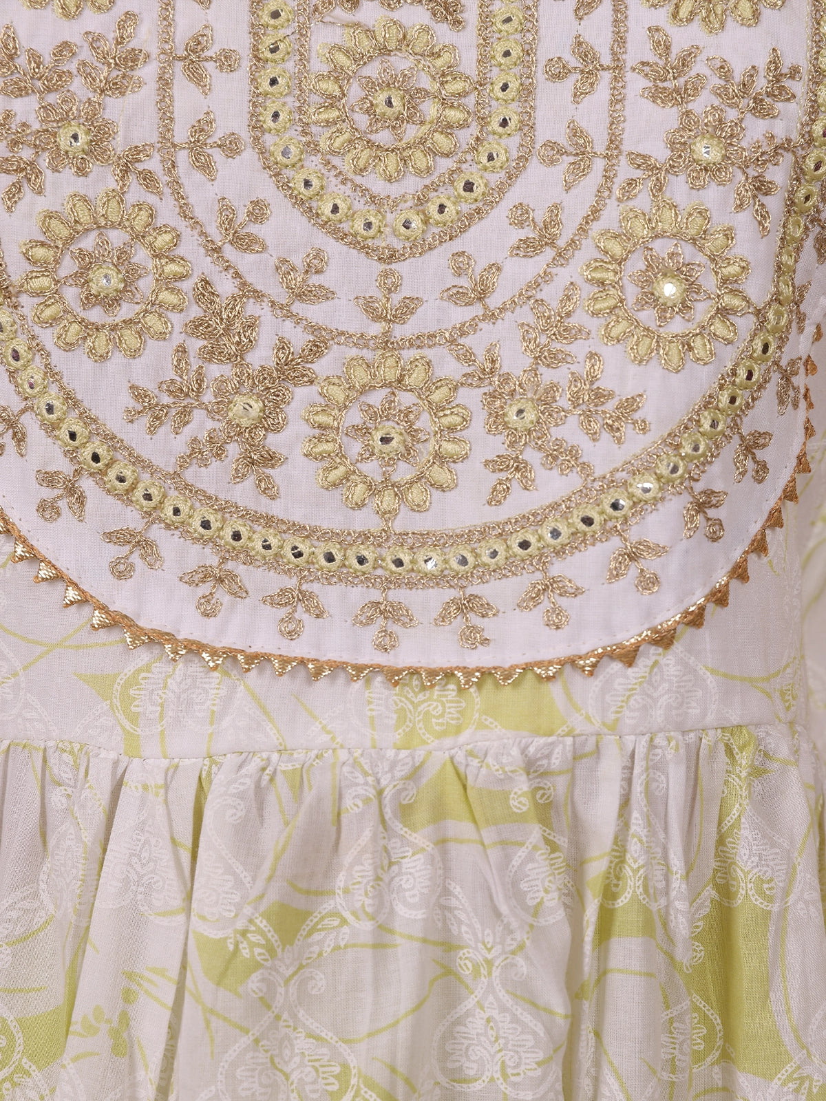 Perfect for casual gatherings, festive mornings, or cultural events, this outfit radiates elegance with its soothing lime hue and refined craftsmanship.