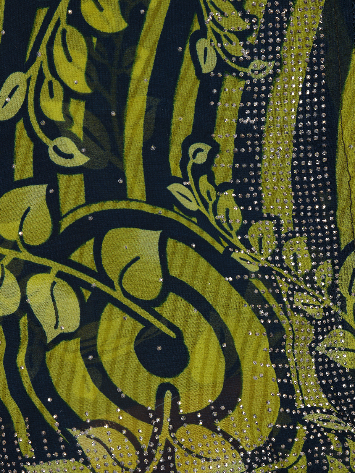 Lime Green Leaf Printed Design Chiffon Saree with Stone Work