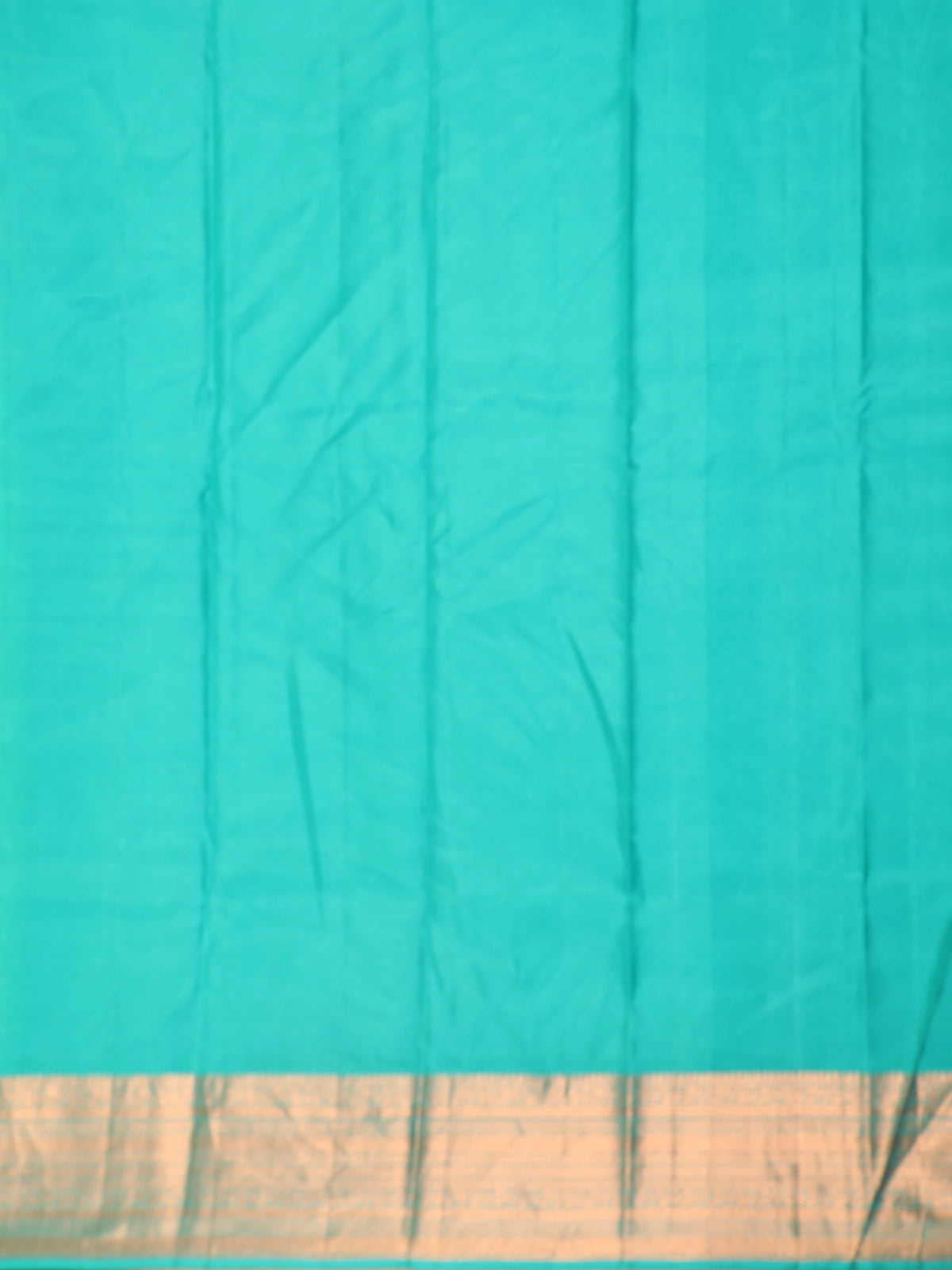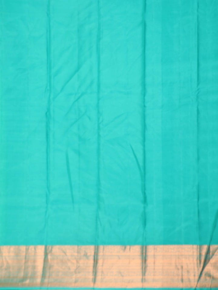 The highlight of this saree is its contrast Teal Green border, highlighted with traditional zari weaving that enhances its graceful drape. The coordinated contrast pallu carries elaborate zari work, bringing out the true essence of classic Kanchipuram craftsmanship.