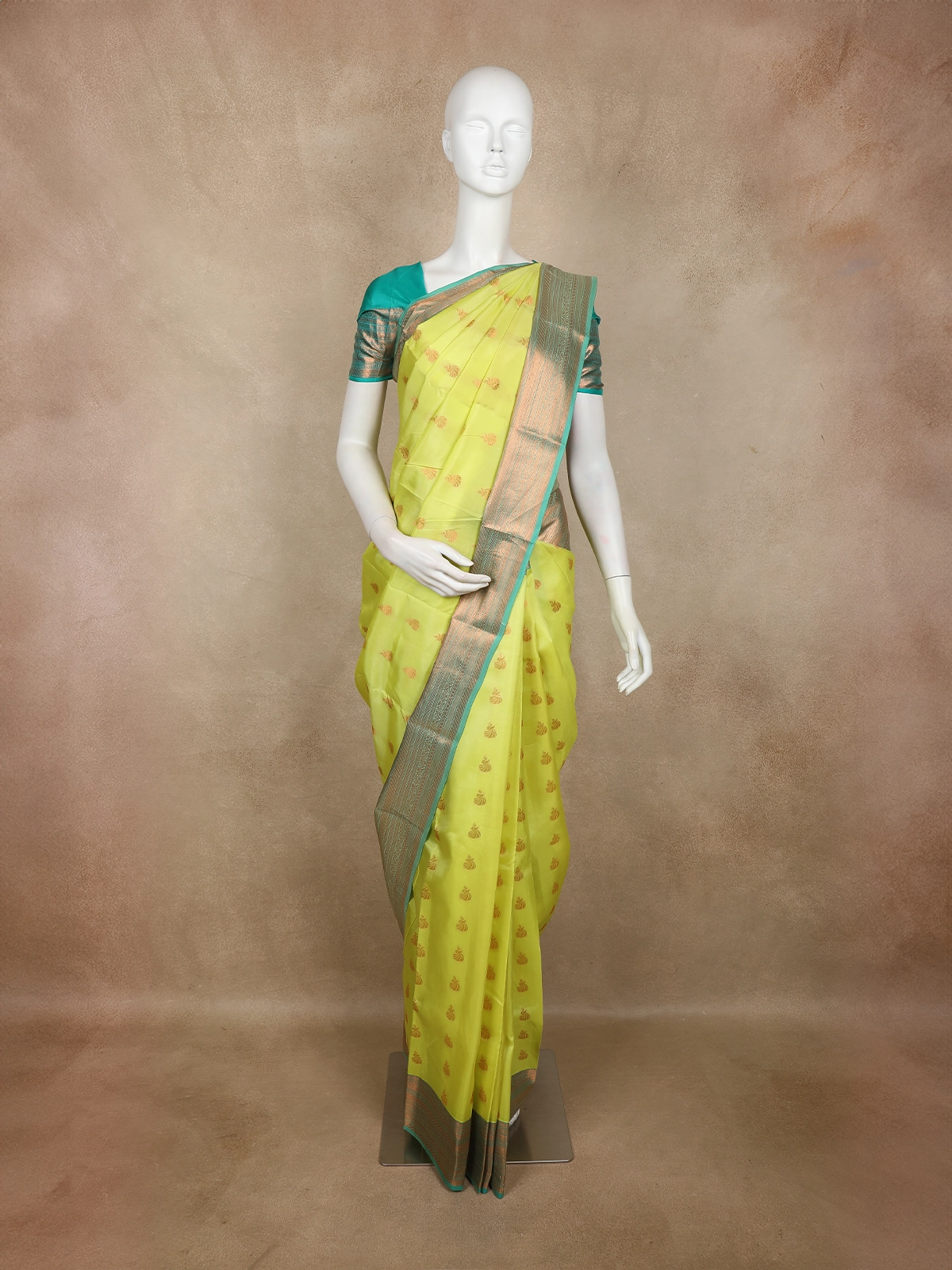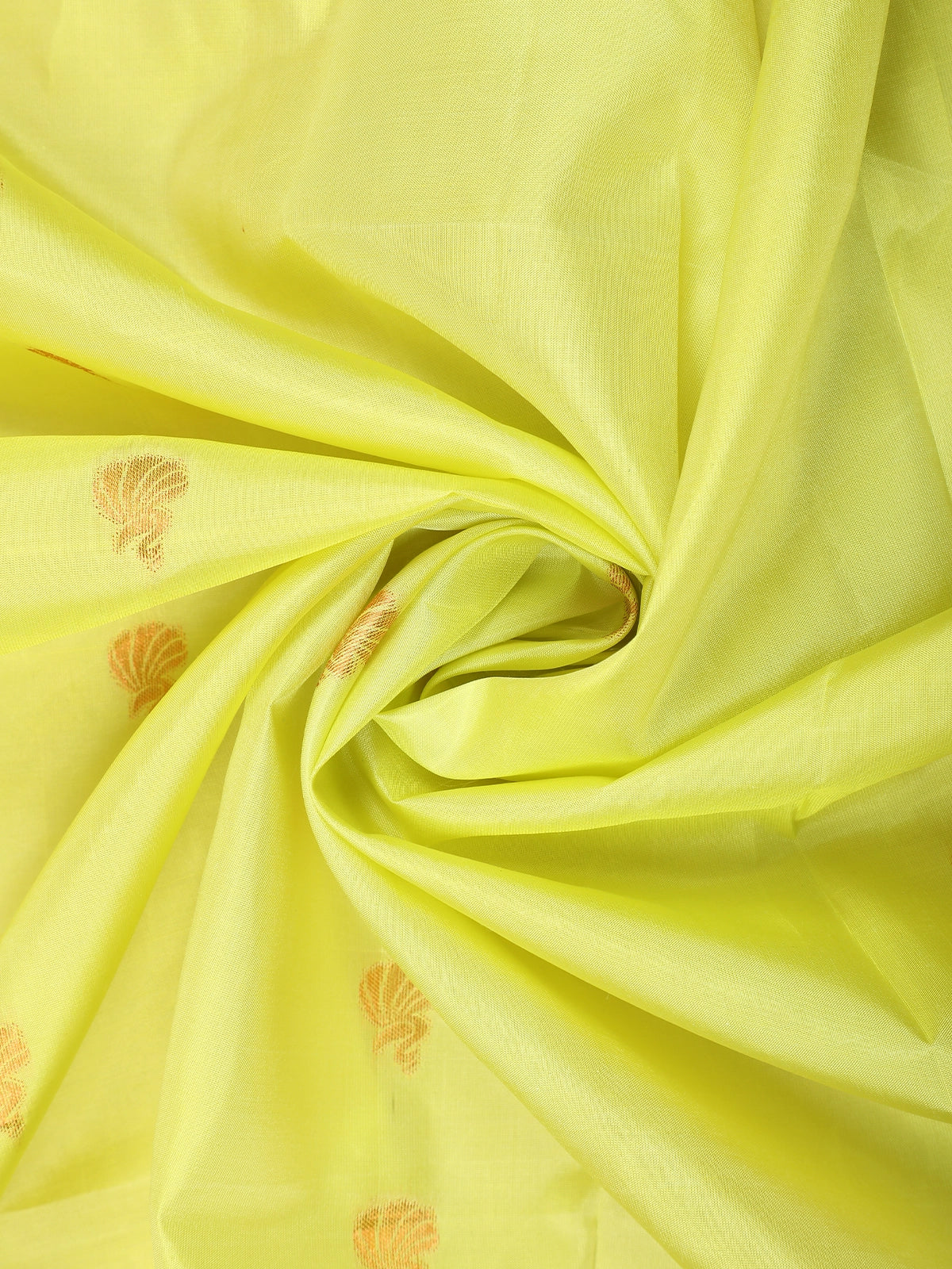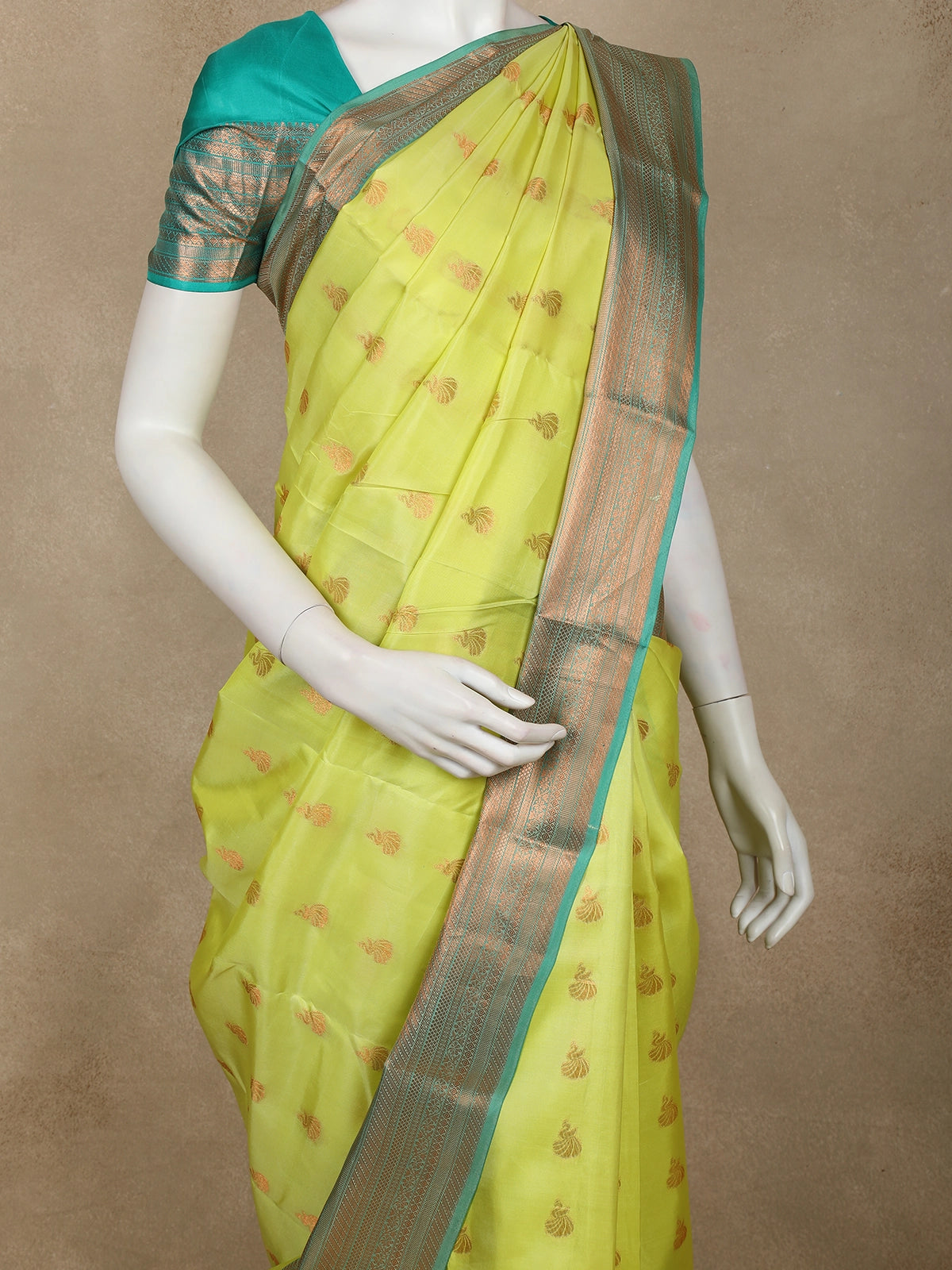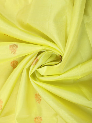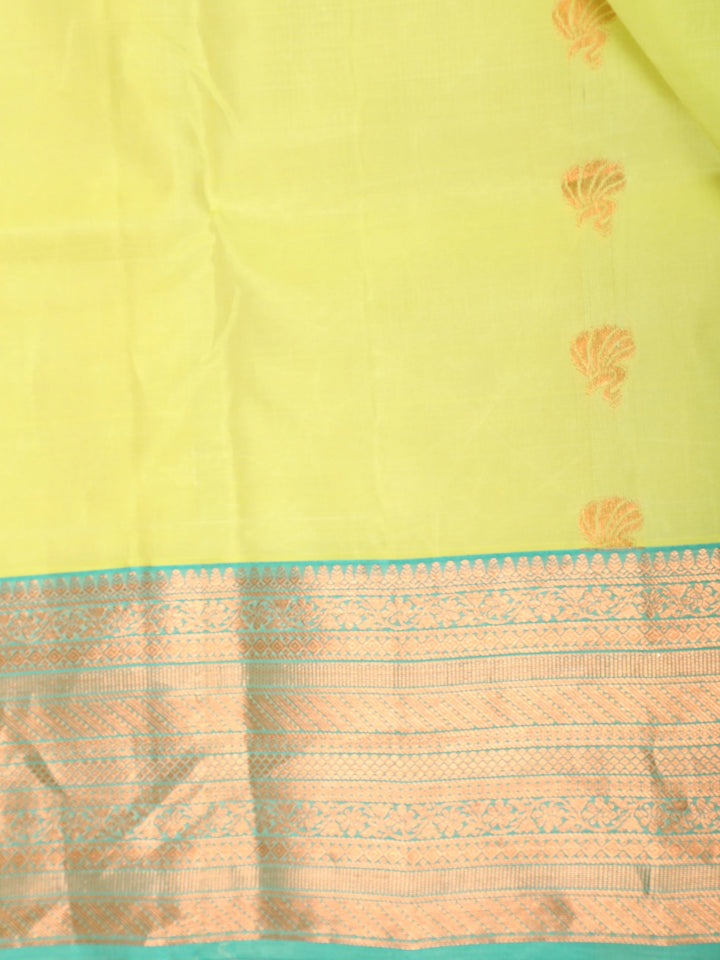 Lime Yellow Zari Butta Woven Design Pure Kanchipuram Silk Saree with Contrast Border