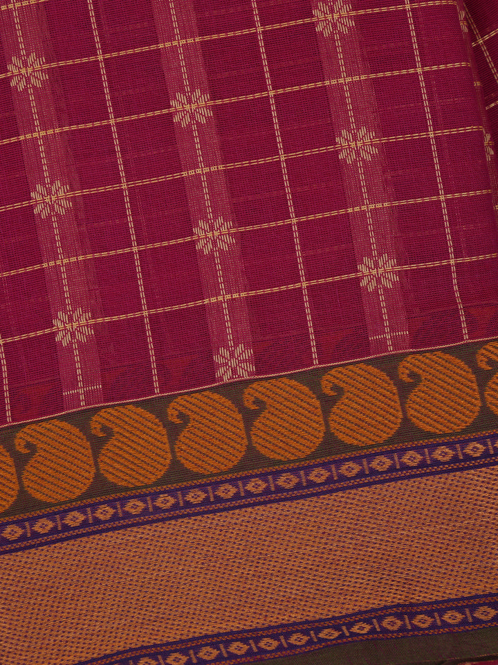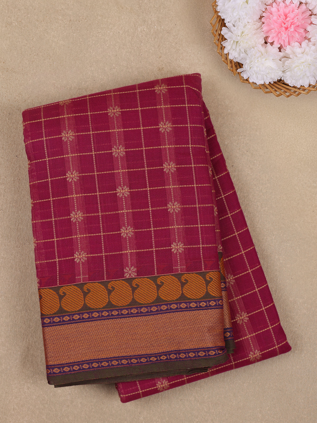 Magenta Checks Design Cotton Saree with Contrast Paisley Border