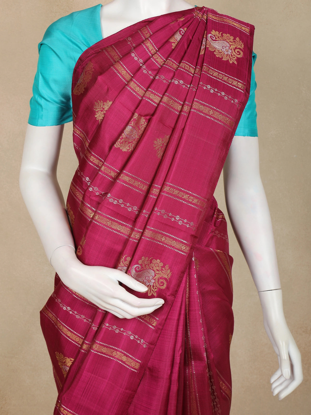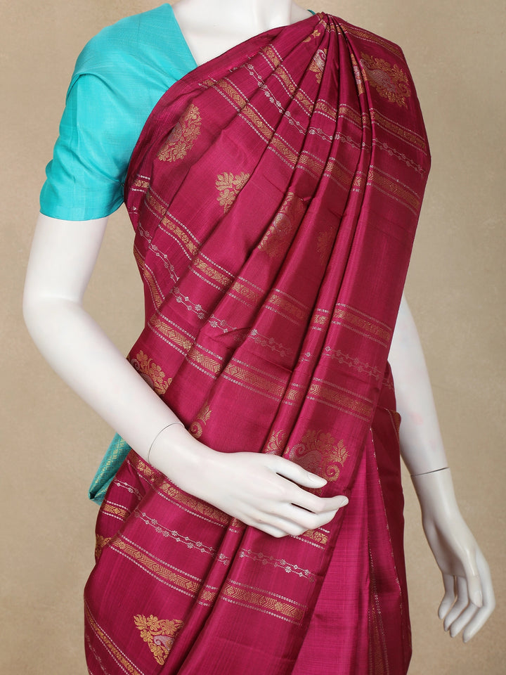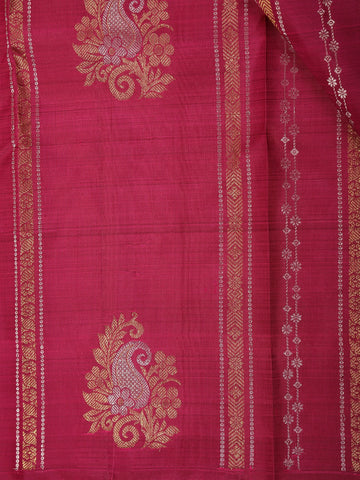 Magenta Pink Paisley And Floral Design Kanchipuram Silk Saree with Solid Border