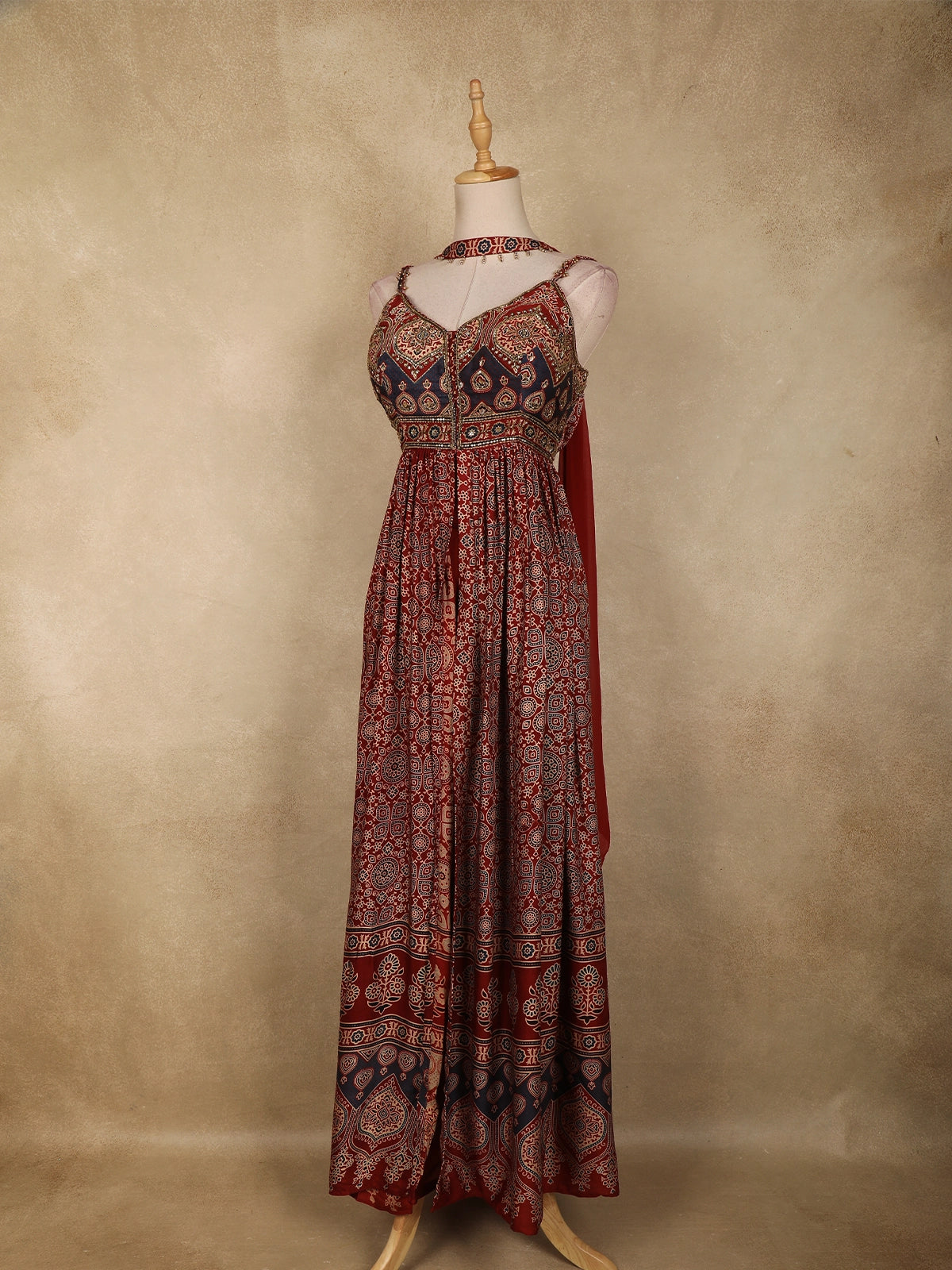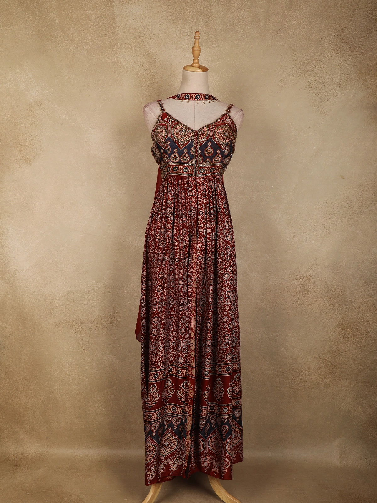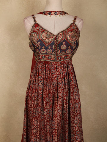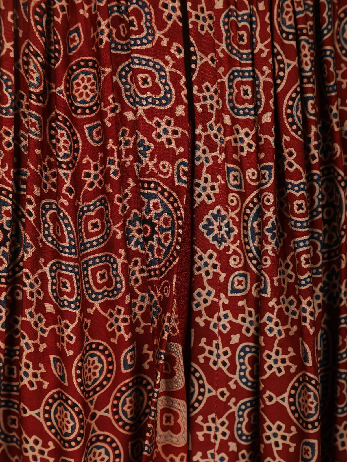 Maroon Ajrakh Printed Cotton Palazzo Suit with Dupatta