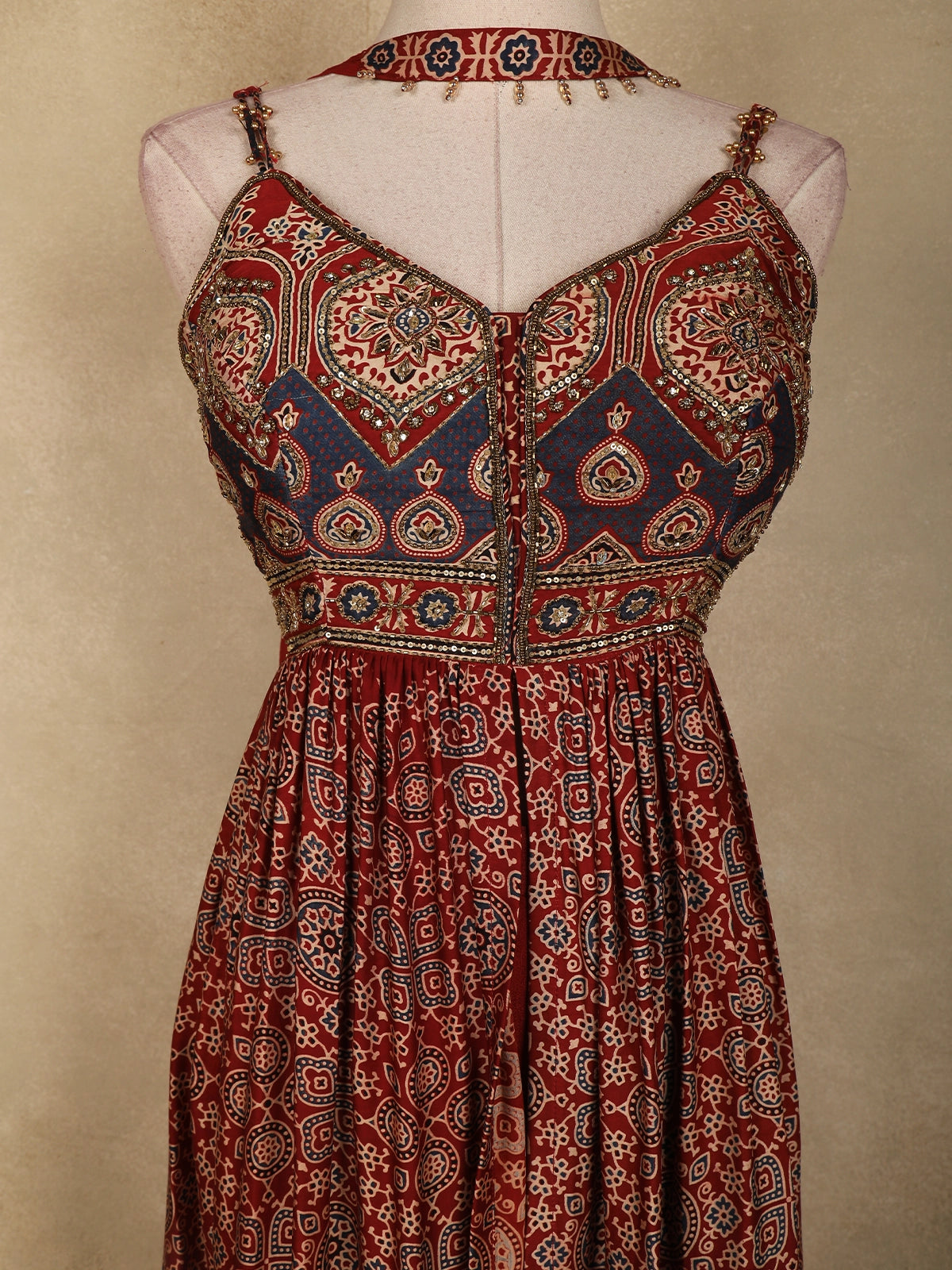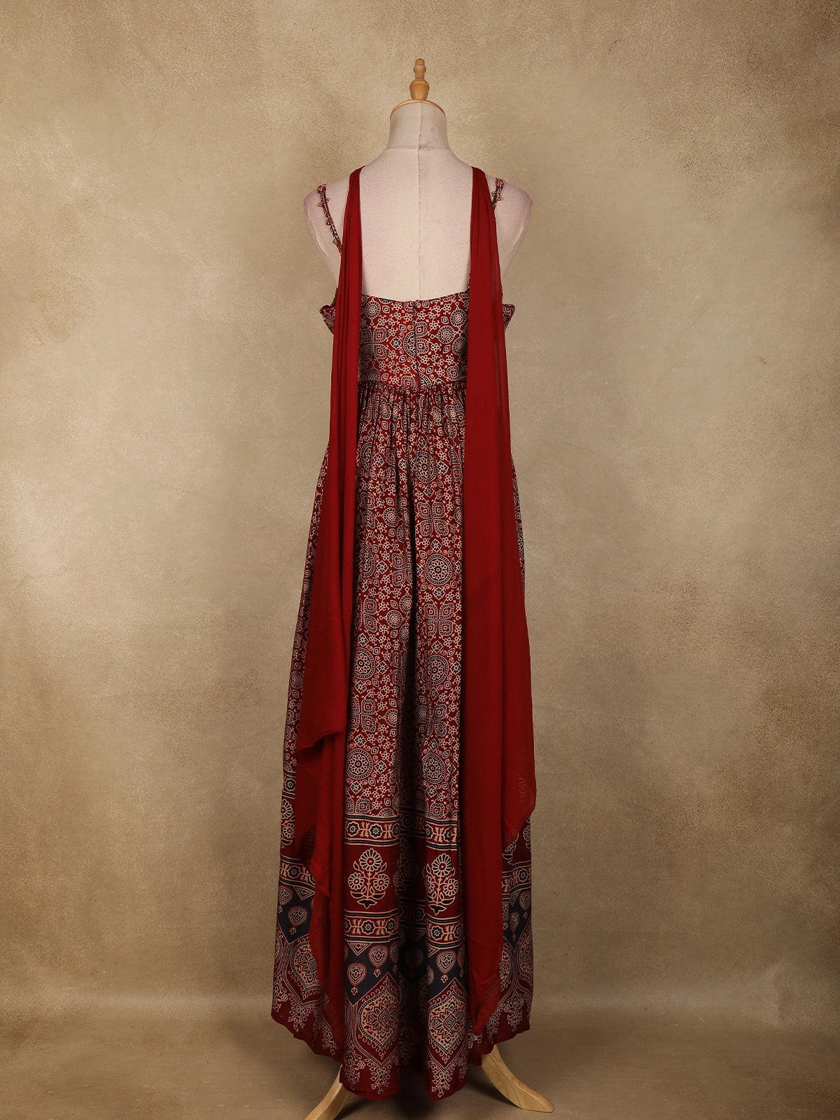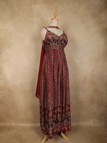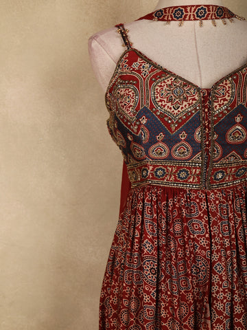 Maroon Ajrakh Printed Cotton Palazzo Suit with Dupatta