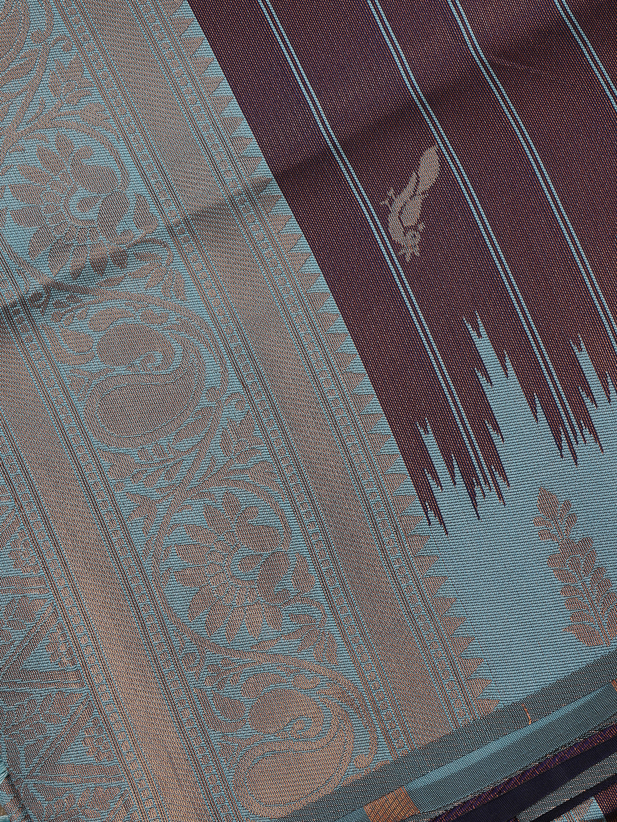 Maroon and Aqua Blue Stripes Woven Art Silk Saree with Paisley Zari Border