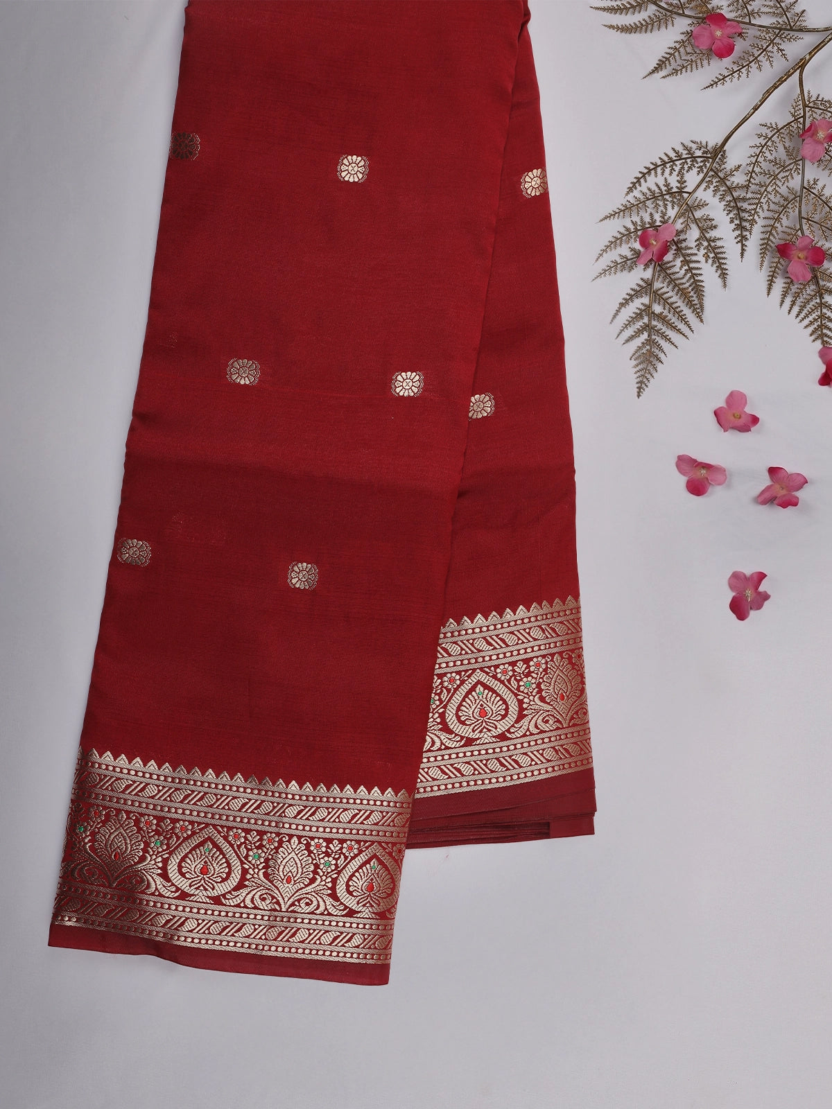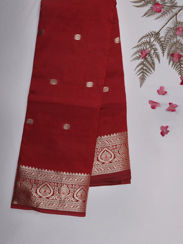 Maroon Butta Woven Design Soft Silk Saree with Silver Zari Floral Border