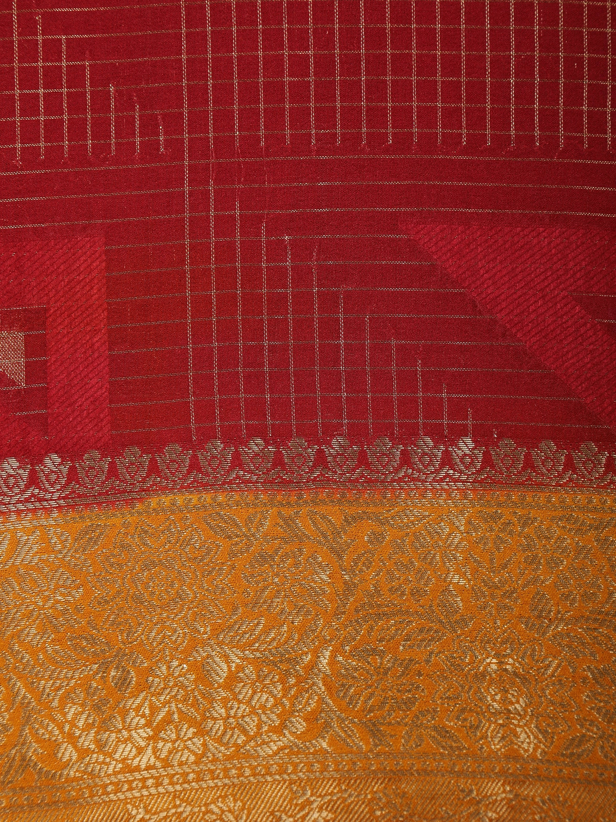 Maroon Checked Design Mysore Silk Saree With Contrast Zari Border