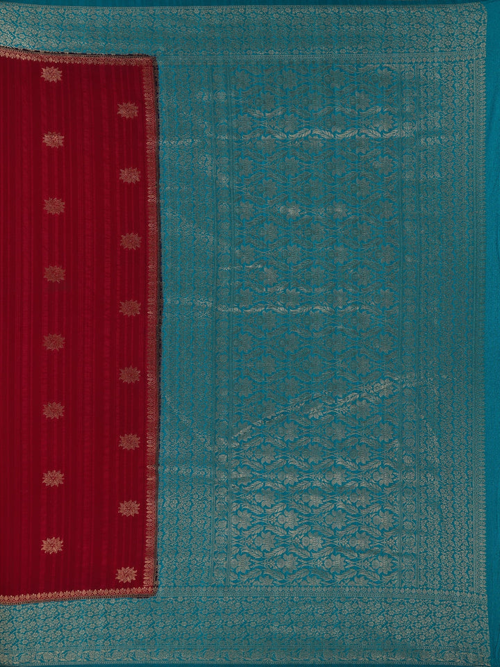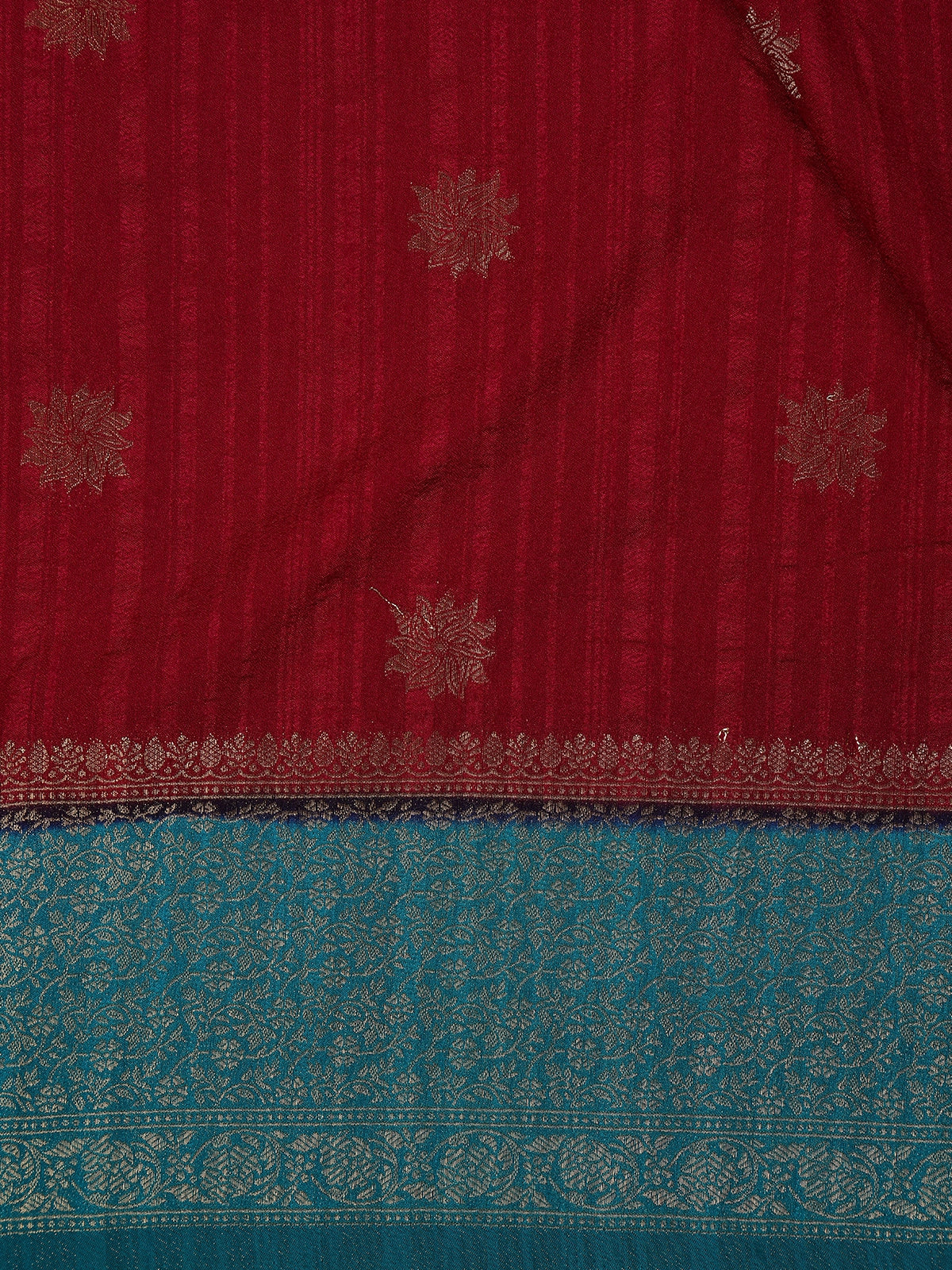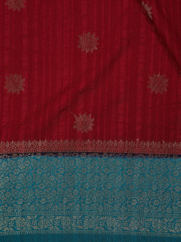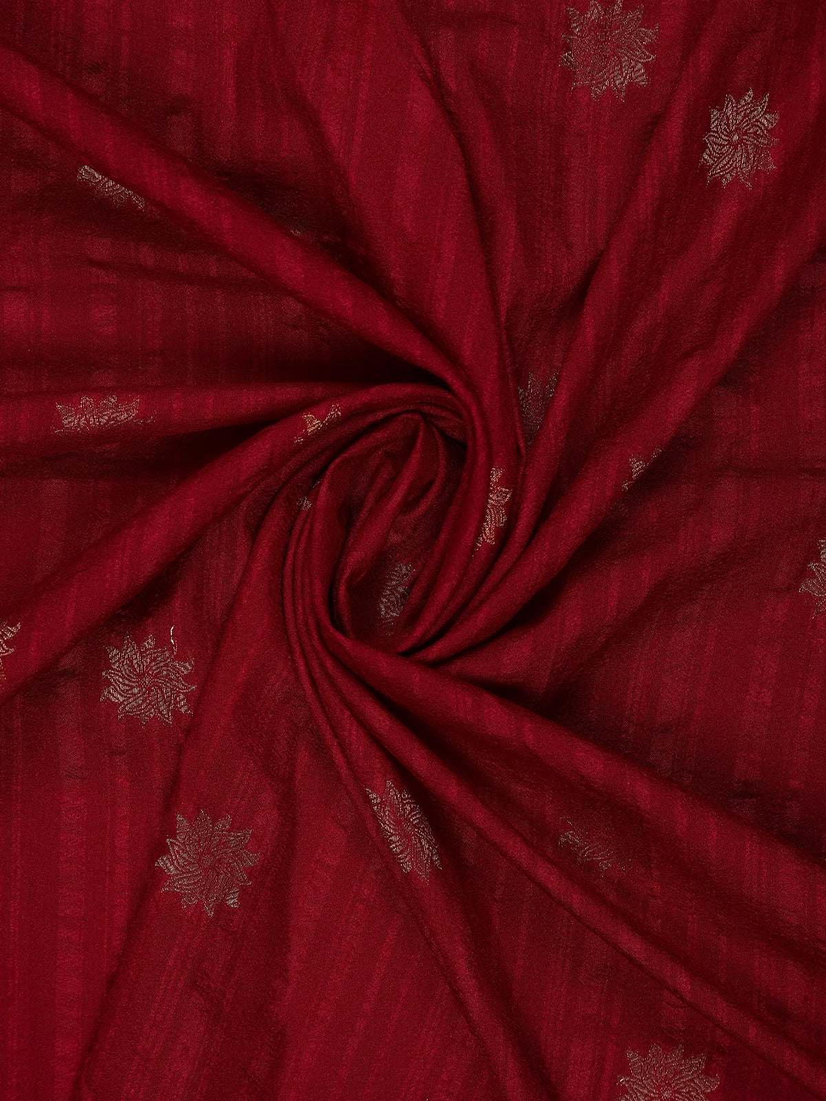 Maroon Floral Butta Woven Semi Banarasi Silk Saree
