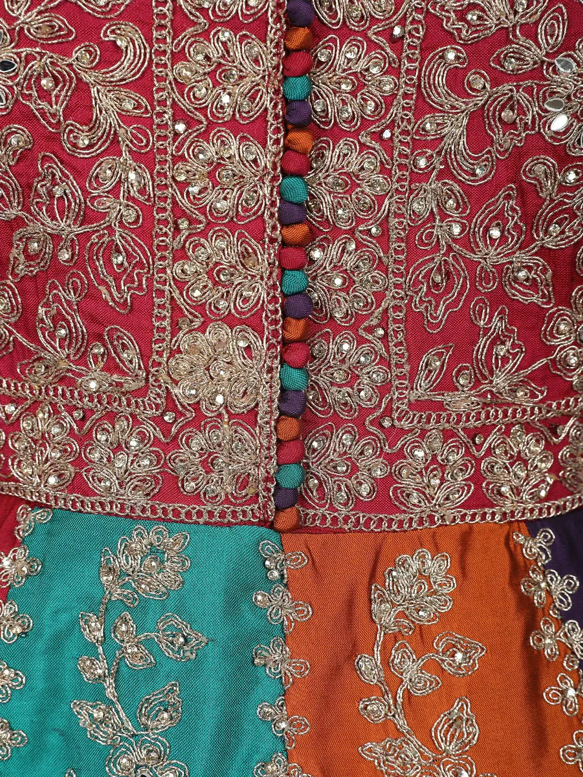 The Multicolor Floral Embroidered Banarasi Silk Gown With Maroon Net Dupatta is a masterpiece of Indian ethnic fashion, blending heritage Banarasi craftsmanship with modern gown-style elegance. Crafted from premium Banarasi silk, the gown showcases intricate multicolor floral embroidery that highlights traditional artistry while adding a vibrant, contemporary flair.